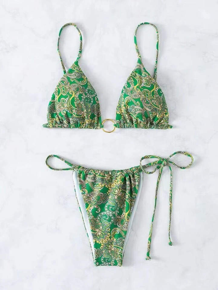ชุดว่ายน้ำสองชิ้นของผู้หญิงชุดว่ายน้ำเซ็กซี่แบบผูกเชือกชุดบิกินี่สายหนังขนาดเล็กดีไซน์แฟชั่นพิมพ์ลาย