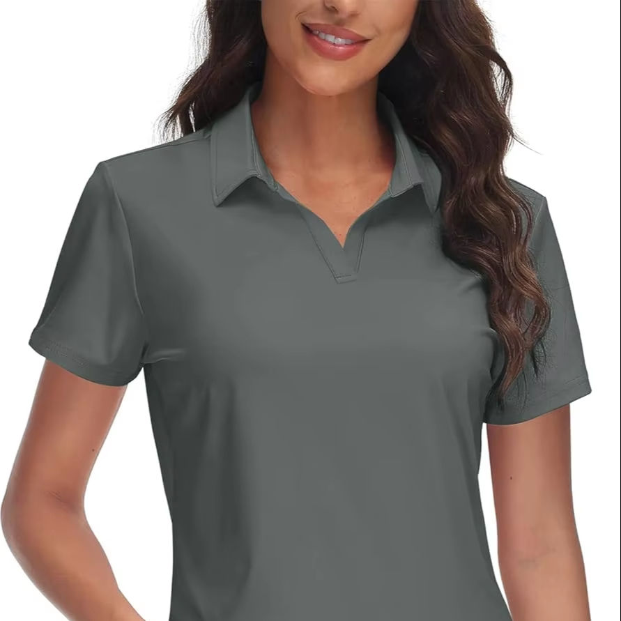 เสื้อโปโลคอวี UPF 50 + ของผู้หญิงเสื้อคอปกกอล์ฟแห้งเร็วป้องกันรอยยับแขนสั้นป้องกันแสงแดด