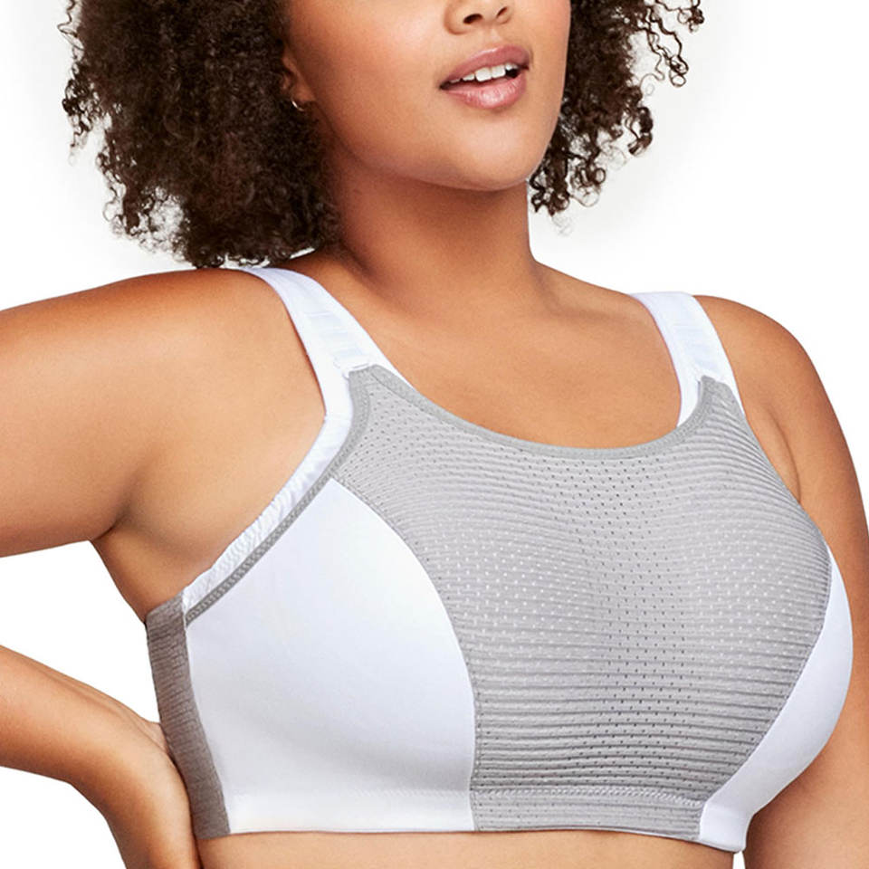 สปอร์ตบรายืดได้เนื้อนุ่มพิเศษสำหรับผู้หญิงมีโลโก้ด้านหน้าขนาดใหญ่พิเศษน้ำหนักเบาดีไซน์ไร้รอยต่อมีสไตล์