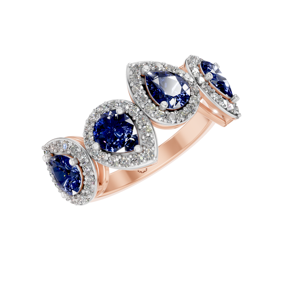 4 Stone Natural Pear Shaped Blue Sapphire Gemstone Ring