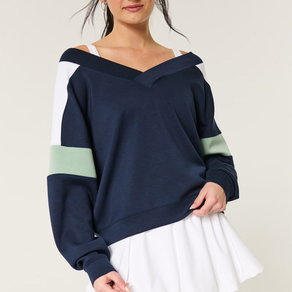 เสื้อสเวตเตอร์ขนแกะไซส์ใหญ่พิเศษสำหรับผู้หญิง, เสื้อมีฮู้ดสไตล์สตรีทแวร์เสื้อสเวตเตอร์คอวีเปิดไหล่ปล่อยชาย