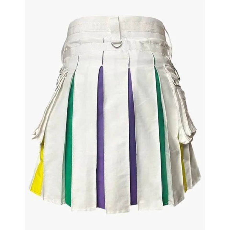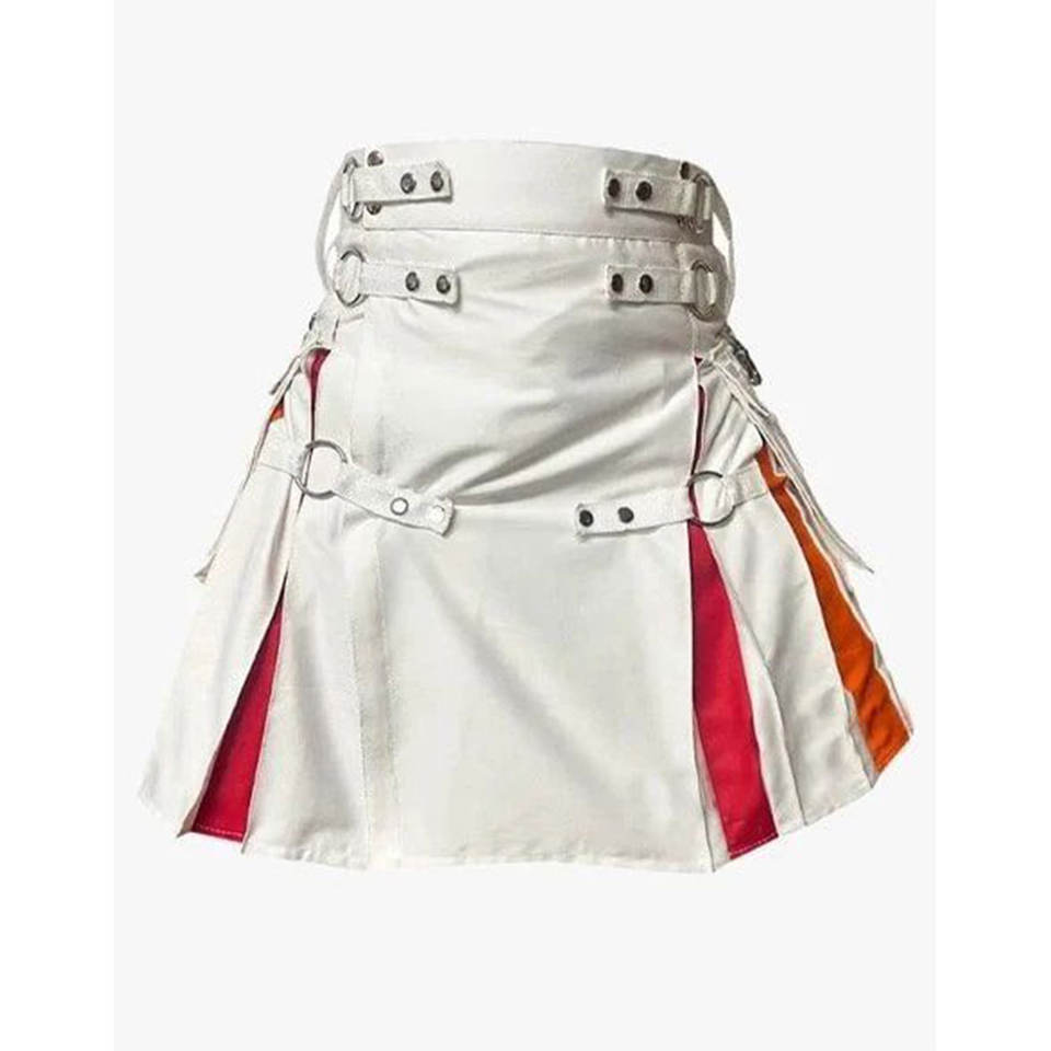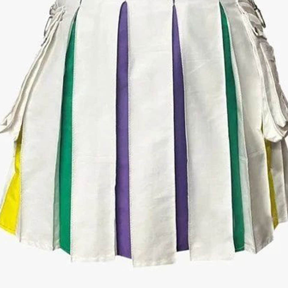 กระโปรงยูทิลิตี้ไฮบริดสำหรับผู้หญิง สีขาวลายสายรุ้ง พร้อมสายไนลอน กระเป๋าจีบ โอริง กระโปรงเด็กผู้หญิง 2026