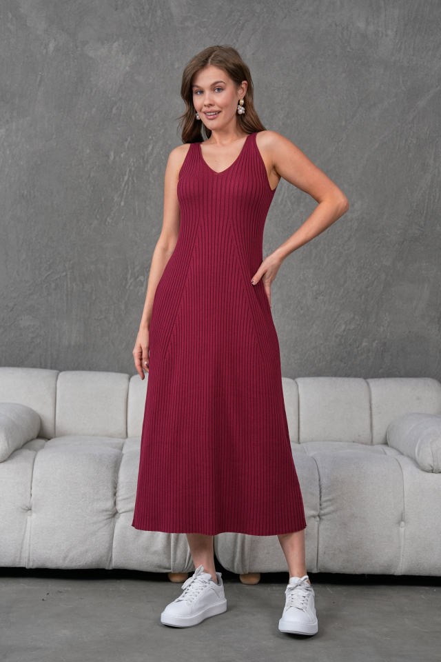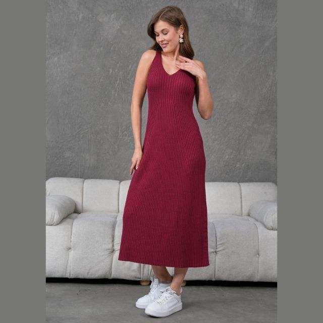 เดรสไหมพรมคอวีสำหรับผู้หญิง ดีไซน์หรูหรา แขนกุด ระบายอากาศได้ดี ผ้าถักคุณภาพสูง รับผลิตตามแบบ (OEM)