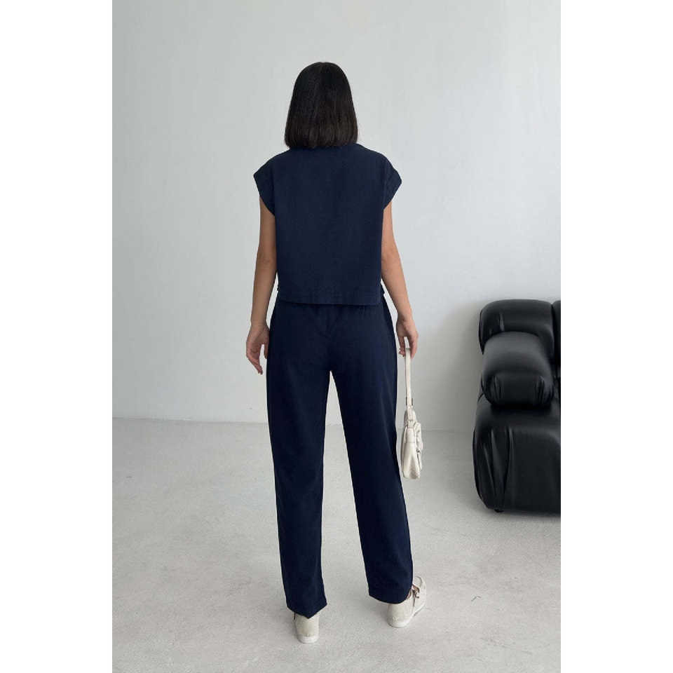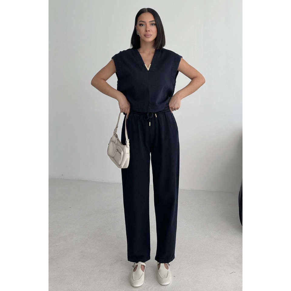 เสื้อเบลาส์ผ้าลินินคอวีสำหรับผู้หญิง