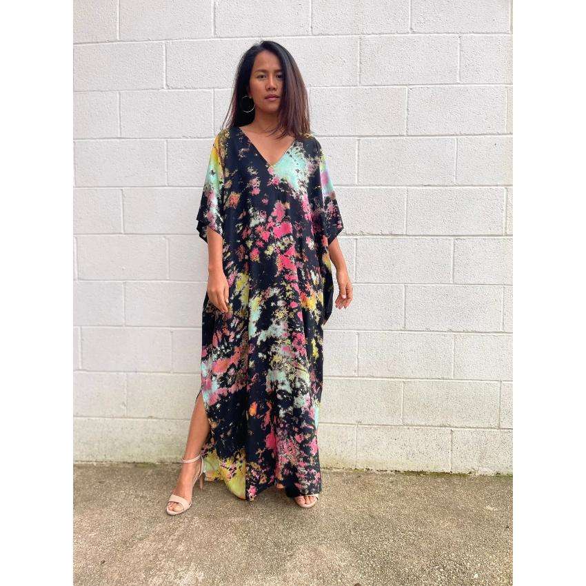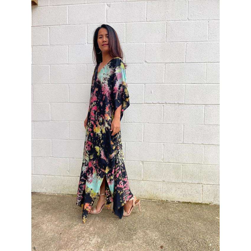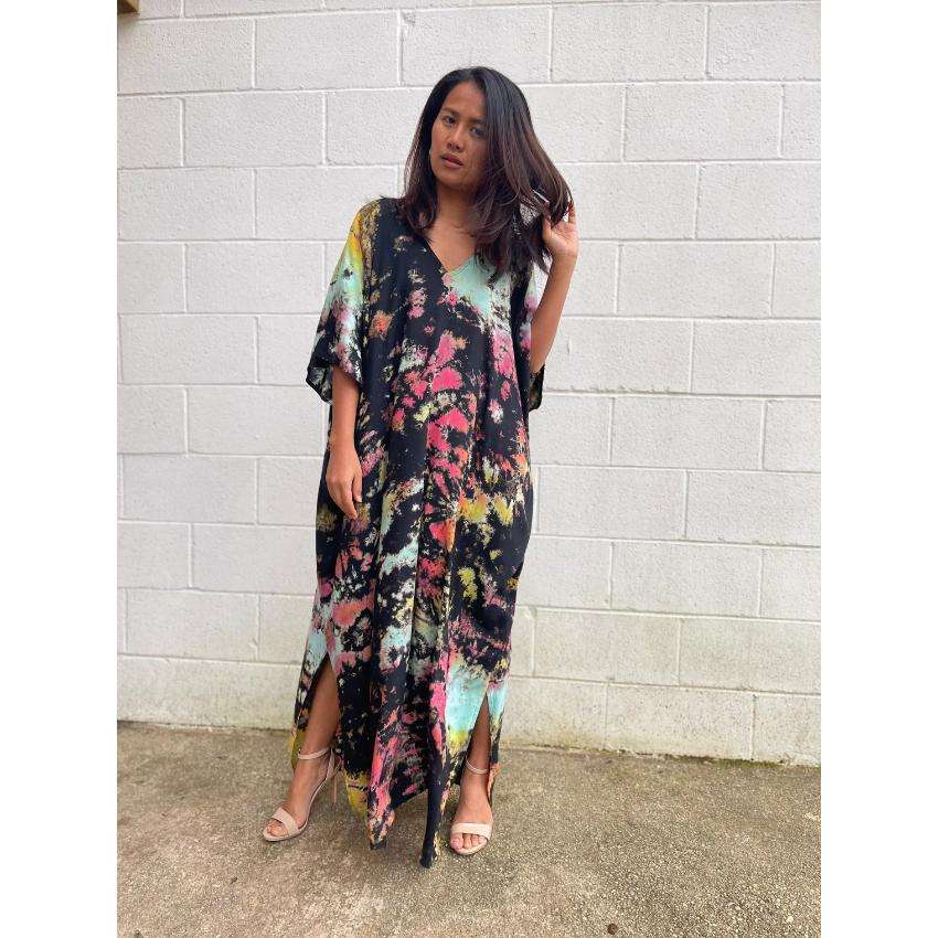 เดรสยาวคอวีพิมพ์ลายสำหรับผู้หญิง ผ้าเป็นมิตรต่อสิ่งแวดล้อม ซักได้ ทรงหลวม เอวธรรมชาติ เหมาะสำหรับใส่ไปเที่ยวทะเลช่วงฤดูร้อน มีรอยผ่าด้านข้าง