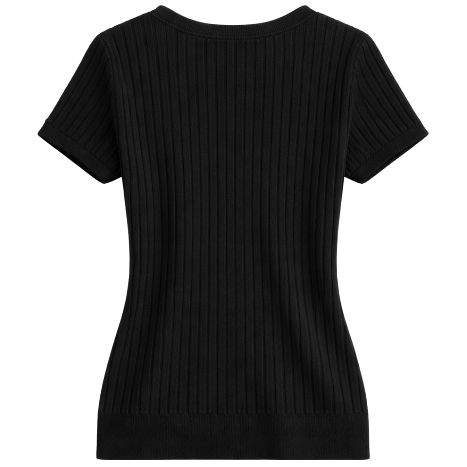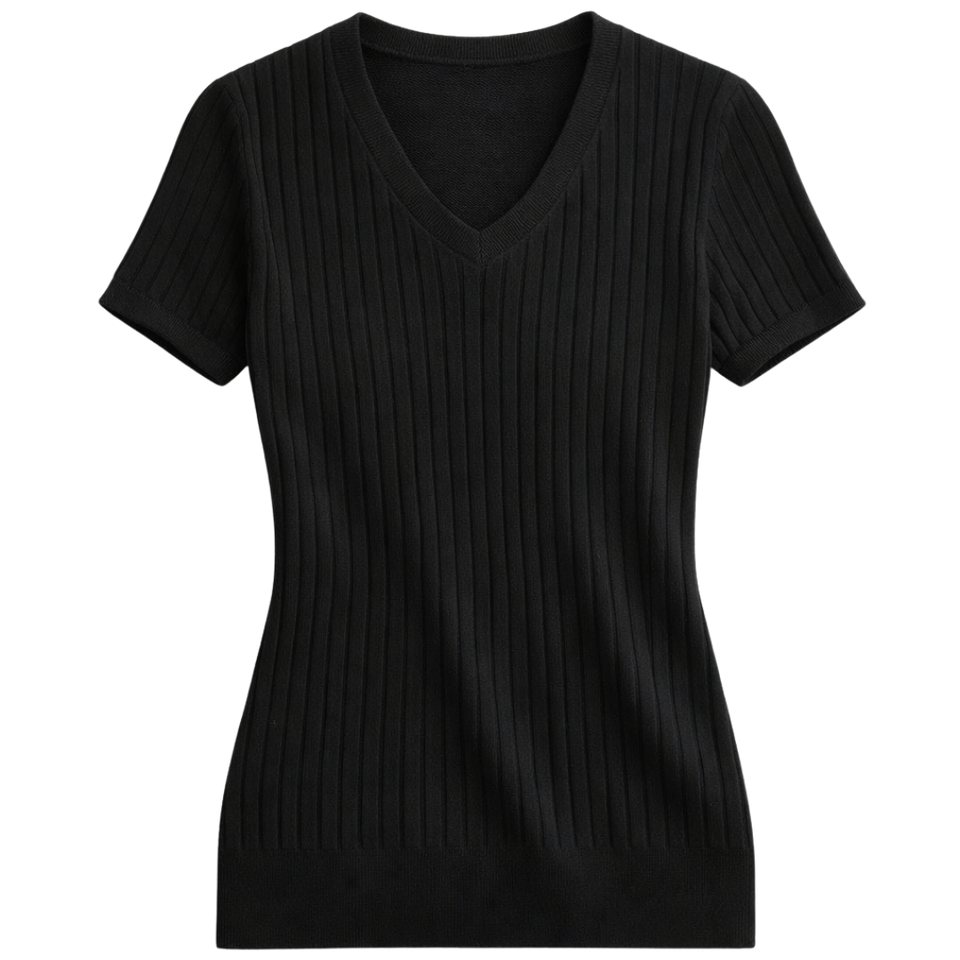 Women’s V Neck Ribbed Knit Top Short Sleeve Slim Fit Casual Summer Pullover Soft Stretch Elegant Everyday Wear Blouse for Womens
