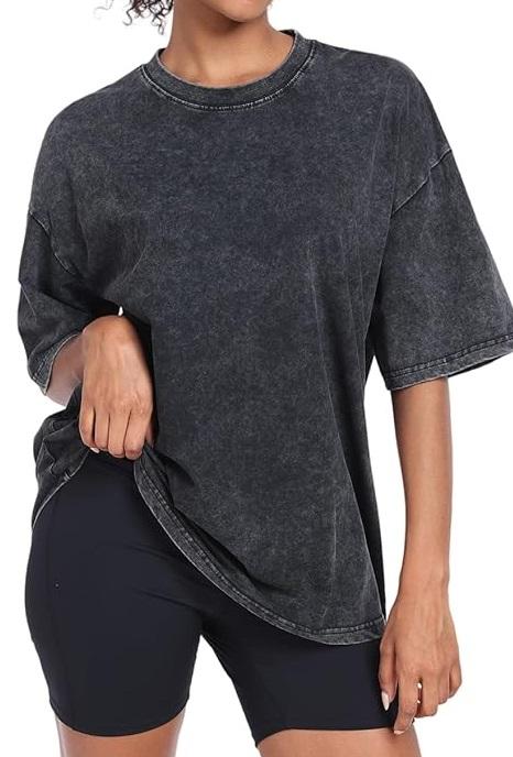 เสื้อยืดผู้หญิงผ้ายีนส์ฟอกสี