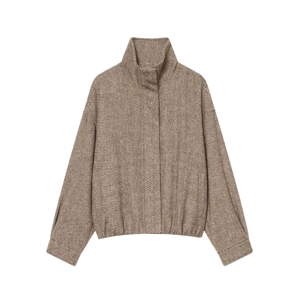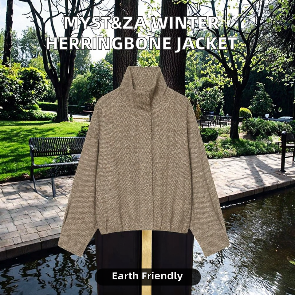 เสื้อแจ็คเก็ตโค้ทผู้หญิงสไตล์วินเทจลำลอง ผลิตจากโพลีเอสเตอร์รักษ์โลก ลายเฮอร์ริงโบนทวิล สำหรับฤดูหนาว ปี 2025 แฟชั่นใหม่ เรียบง่าย ใช้งานได้หลากหลาย