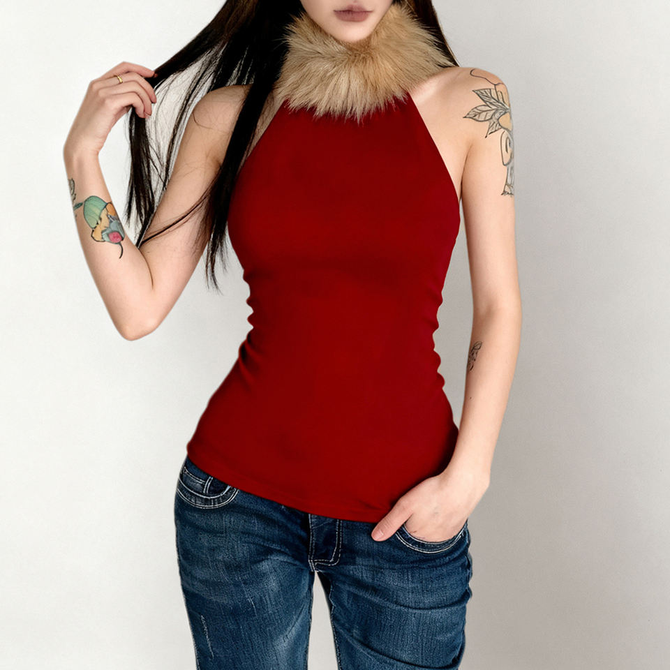 เสื้อกล้ามแนววินเทจสำหรับผู้หญิงเสื้อกล้ามคริสมาสต์ระบายอากาศได้ดีเป็นมิตรต่อสิ่งแวดล้อมแผงขนสัตว์เทียมคอร์เซ็ตเสื้อกั๊กถักรัดเอวแต่งด้วยขนนกสไตล์ Y2K
