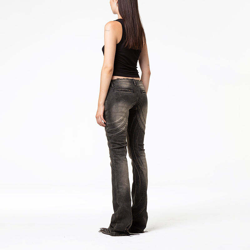 กางเกงยีนส์ผ้ายืดเอวต่ำแบบวินเทจของผู้หญิงกางเกงยีนส์ขาตรงไมโครทรงสลิมฟิต
