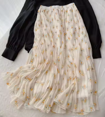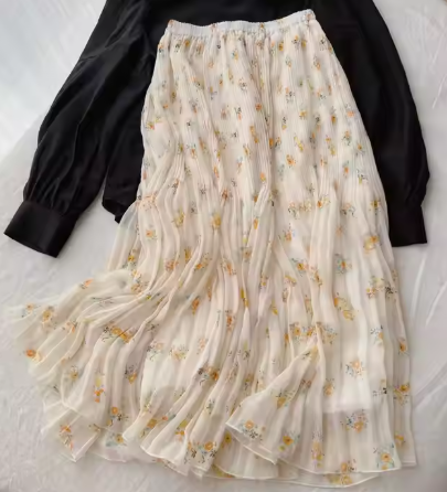 กระโปรงแม็กซี่ลายดอกไม้สไตล์วินเทจสำหรับผู้หญิง เอวธรรมชาติ ผ้ากำมะหยี่จีบ ทรงตรง ไซส์พลัส ใส่สบายสำหรับฤดูร้อน ป้องกันไฟฟ้าสถิต