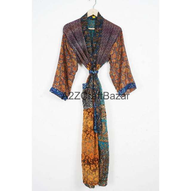 ชุดกิโมโนผ้าไหมลายดอกวินเทจสำหรับผู้หญิง คอวี มีเชือกผูกเอว สไตล์ลำลอง ฮิปปี้ ซารี โบฮีเมียน ชุดนอน ชุดชายหาด แห้งเร็ว ชุดคอมโบสำหรับฤดูร้อน