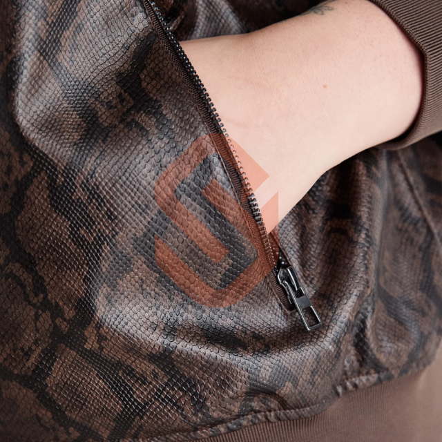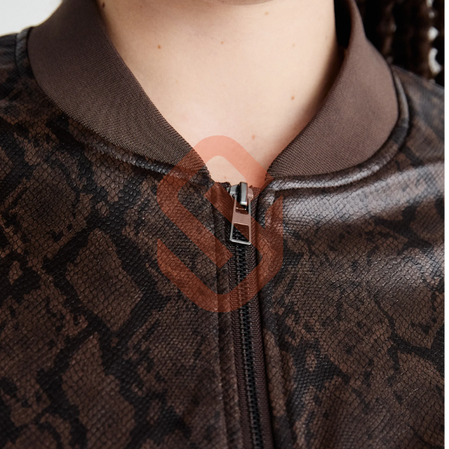 แจ็คเก็ตนักขี่จักรยานหนังแท้วินเทจของผู้หญิงดีไซน์ใหม่ลายนูนมีซิปปิดรูปแบบทึบระบายอากาศได้ดีสำหรับฤดูหนาว
