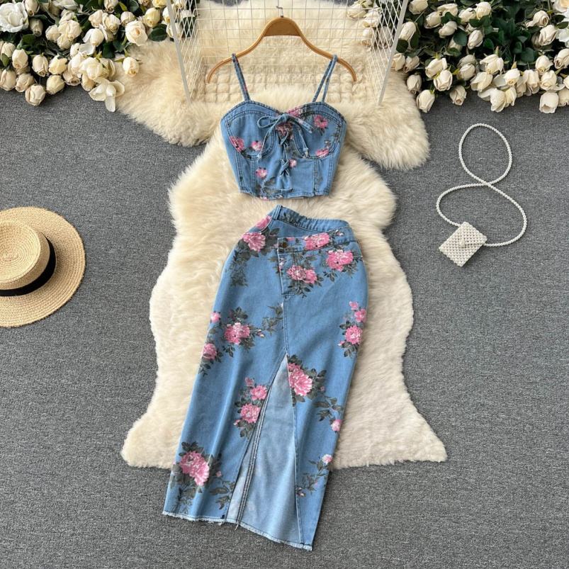 ชุดกระโปรงเอวสูงสไตล์วินเทจสำหรับผู้หญิง พร้อมเสื้อท่อนบนสีพื้น ชุดเดรสผ้าฝ้ายลำลองสำหรับฤดูร้อน ชุดพิมพ์ลายลำลอง รับทำโลโก้ตามสั่ง ผ้าสามารถปรับแต่งได้