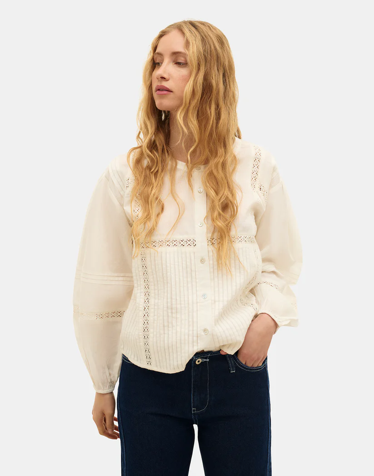 เสื้อผู้หญิงสไตล์วินเทจ คอจีน แขนระบาย ผ้าฝ้ายเนื้อนุ่ม ระบายอากาศดี แขนยาว เหมาะสำหรับใส่ทำงาน เป็นมิตรกับสิ่งแวดล้อม