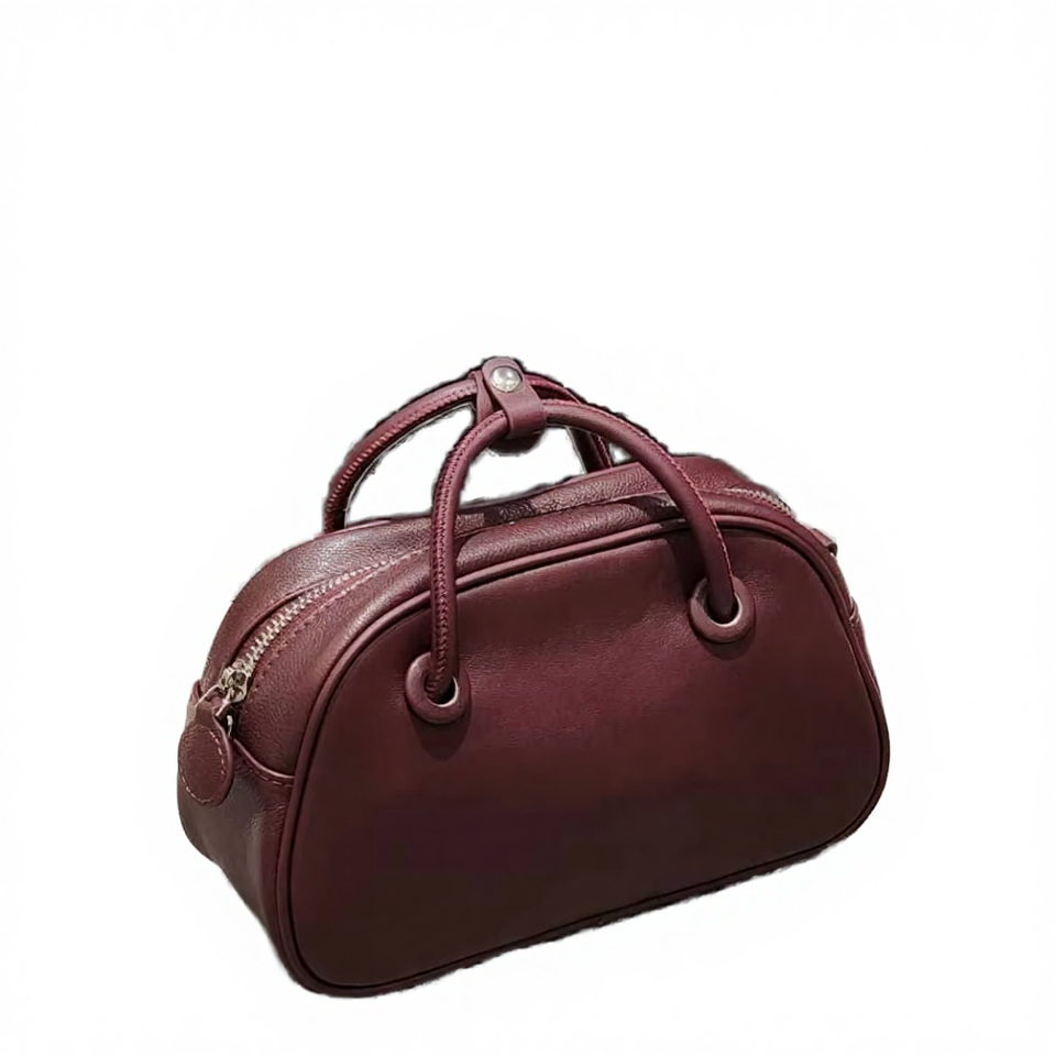 กระเป๋าสะพายข้างทรงหมอนสไตล์วินเทจสำหรับผู้หญิง หนังแท้ ปิดด้วยซิป บุผ้าฝ้าย