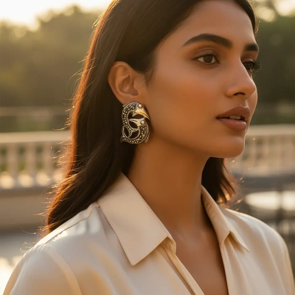 ต่างหูหนีบแบบวินเทจรูปนกสีเงินสำหรับผู้หญิง ประดับเพชร ซิรคอน และมุก เหมาะสำหรับงานแต่งงาน งานปาร์ตี้ หรือเป็นของขวัญ