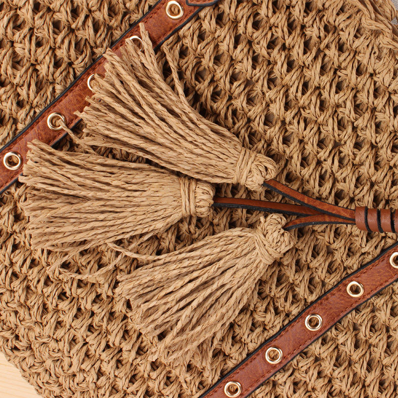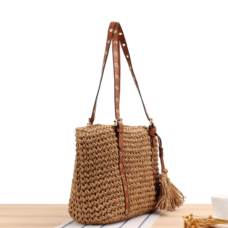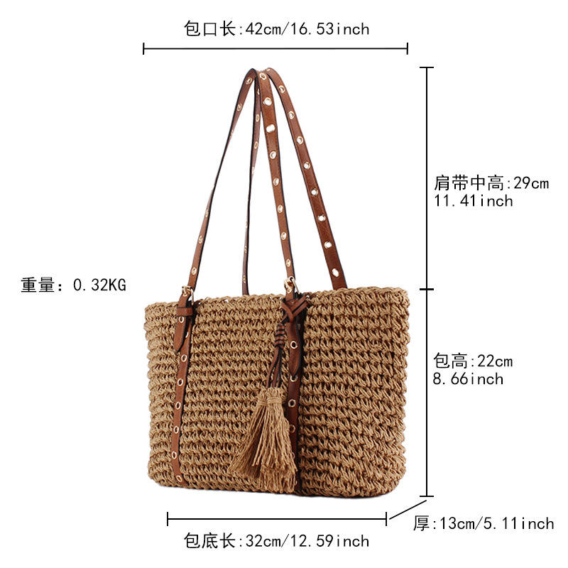 กระเป๋าชายหาดถักแบบมีซิปเปิดไหล่เดี่ยวแนววินเทจของผู้หญิงเชือกกระดาษโพลีเอสเตอร์แบบถักด้วยมือสไตล์เดรสฤดูร้อน