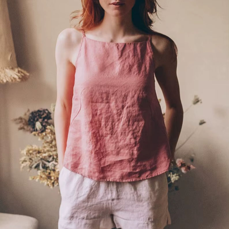 เสื้อสายเดี่ยวผ้าลินินผสมผ้าฝ้ายสไตล์วินเทจสำหรับผู้หญิง ผูกหลัง แขนกุด สำหรับฤดูใบไม้ร่วง ขายส่งแบบ ODM