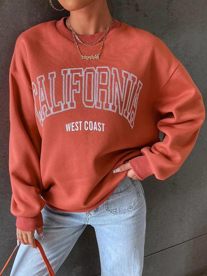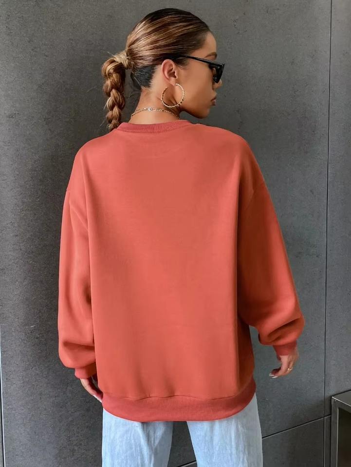 Women's Vintage Sports Casual Long-Sleeved Sweatshirt Autumn Plus-Size Crew Neck Letter Print Customizable Hoodies Sweatshirts
