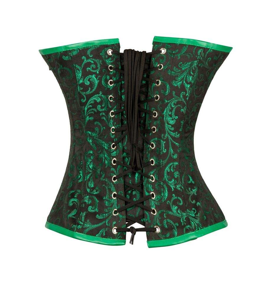 ชุดคอร์เซ็ทรัดเอวสไตล์โกธิคสไตล์วินเทจของผู้หญิงเข็มขัดหนังผ้าโบรเคดสีเขียวสีดำตกแต่งด้วยกระดุมลูกไม้