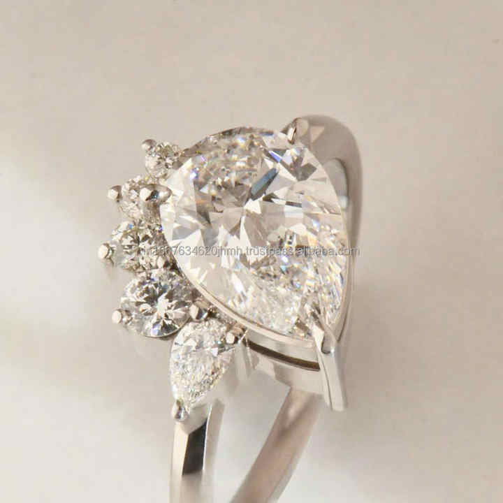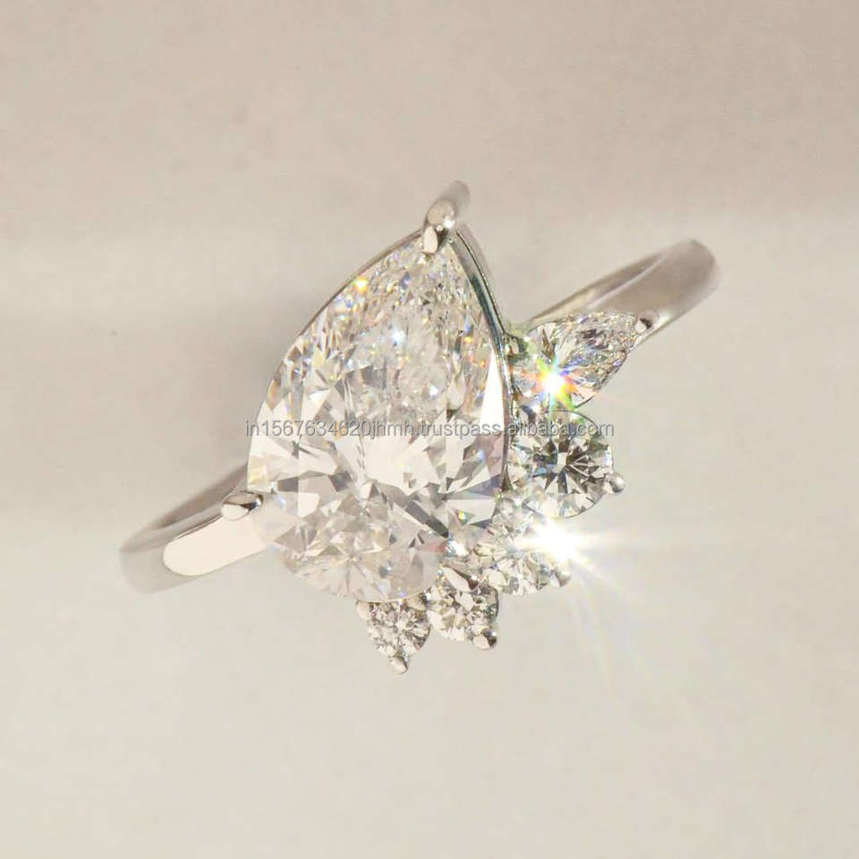 แหวนหมั้น/แต่งงานสไตล์วินเทจสำหรับผู้หญิง ทองคำขาว 14K ประดับเพชรทรงลูกแพร์ เพชรเพาะเลี้ยงในห้องปฏิบัติการ คลาสสิก รับรองโดย IGI