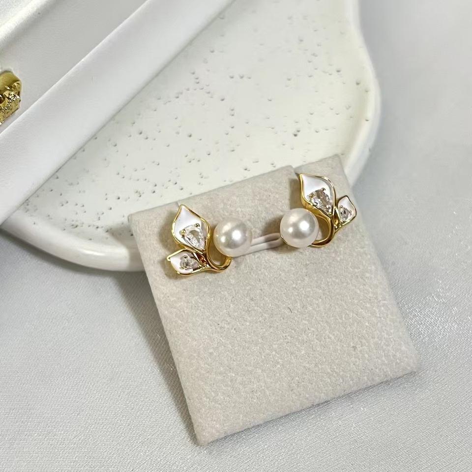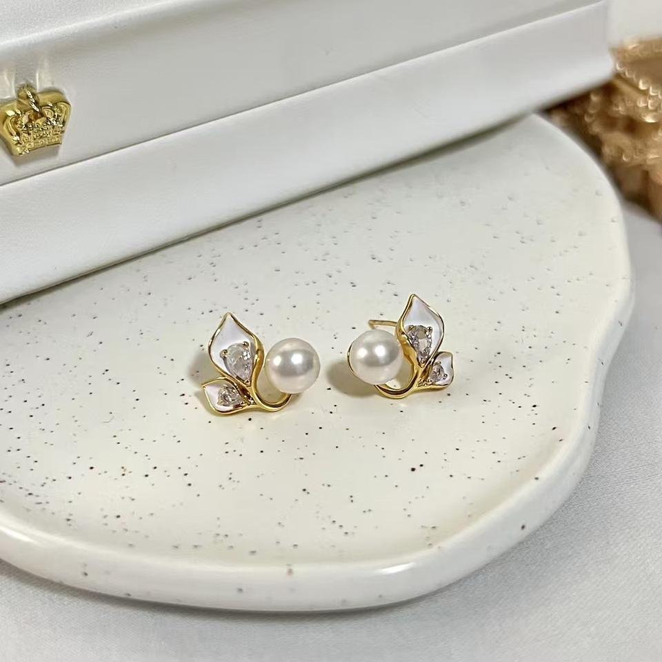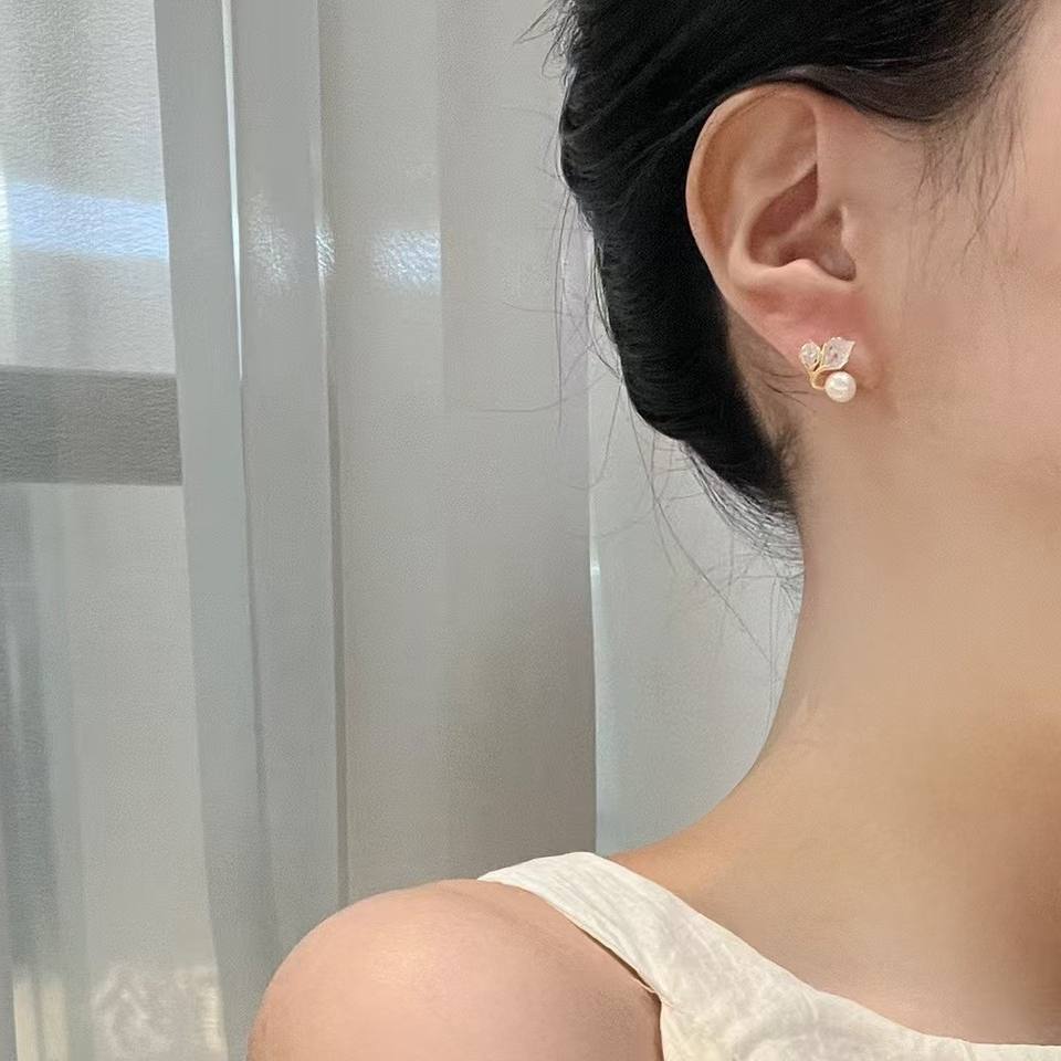 ต่างหูสไตล์วินเทจประดับเพชรซิคอนและไข่มุกน้ำจืดธรรมชาติ ดีไซน์เก๋ไก๋ ตัวเข็มเงินแท้ สไตล์หวานละมุน