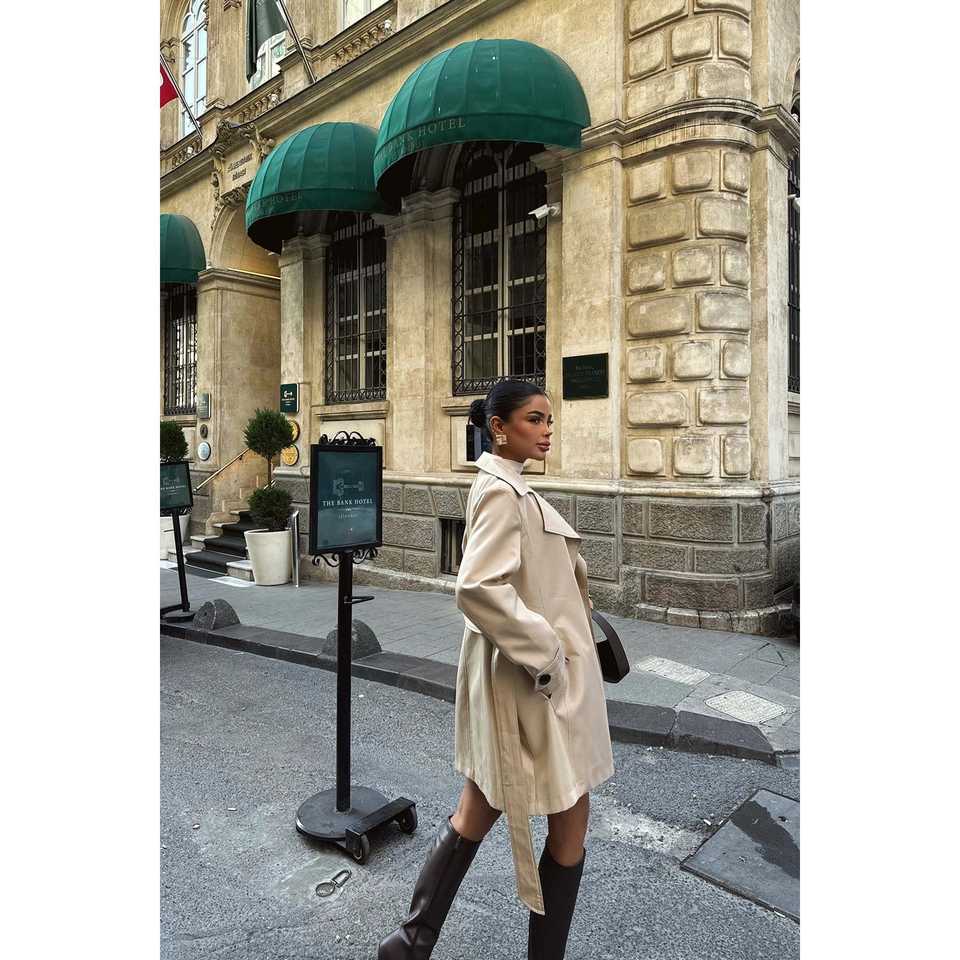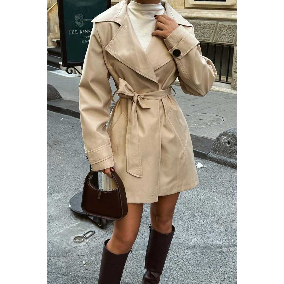 เสื้อโค้ทเทรนช์สไตล์วินเทจสำหรับผู้หญิง รุ่น Hosanna สีครีม กระดุมสองแถว ตกแต่งลายพิมพ์ ผ้าเดนิมกันน้ำ ผสมผ้าฝ้าย สำหรับฤดูใบไม้ผลิ ฤดูใบไม้ร่วง/ฤดูหนาว