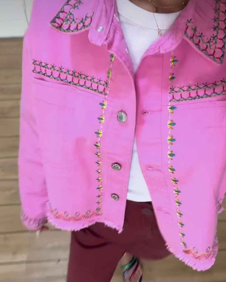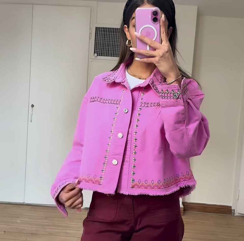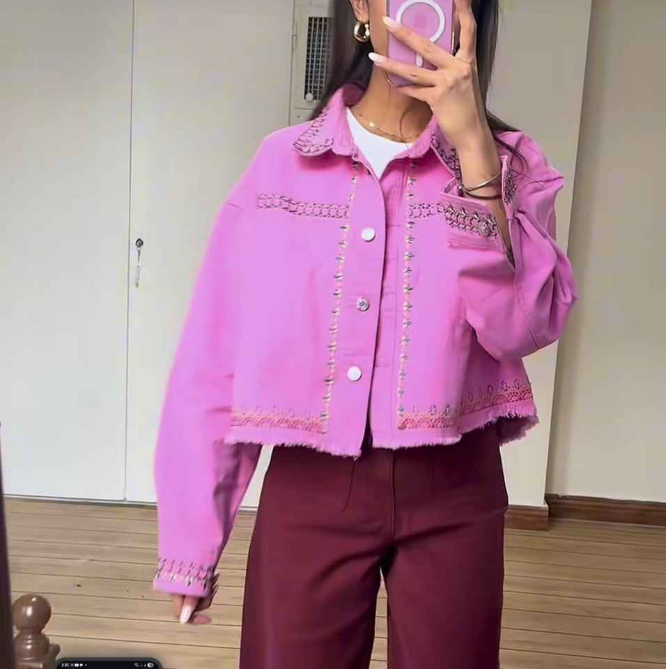 แจ็กเก็ตยีนส์ฟอก Y2K สไตล์วินเทจสำหรับสตรีทแวร์ผ้าลูกไม้ดอกไม้หวาน