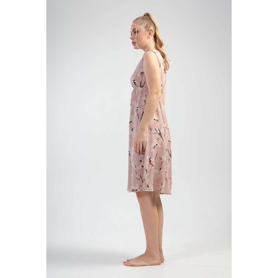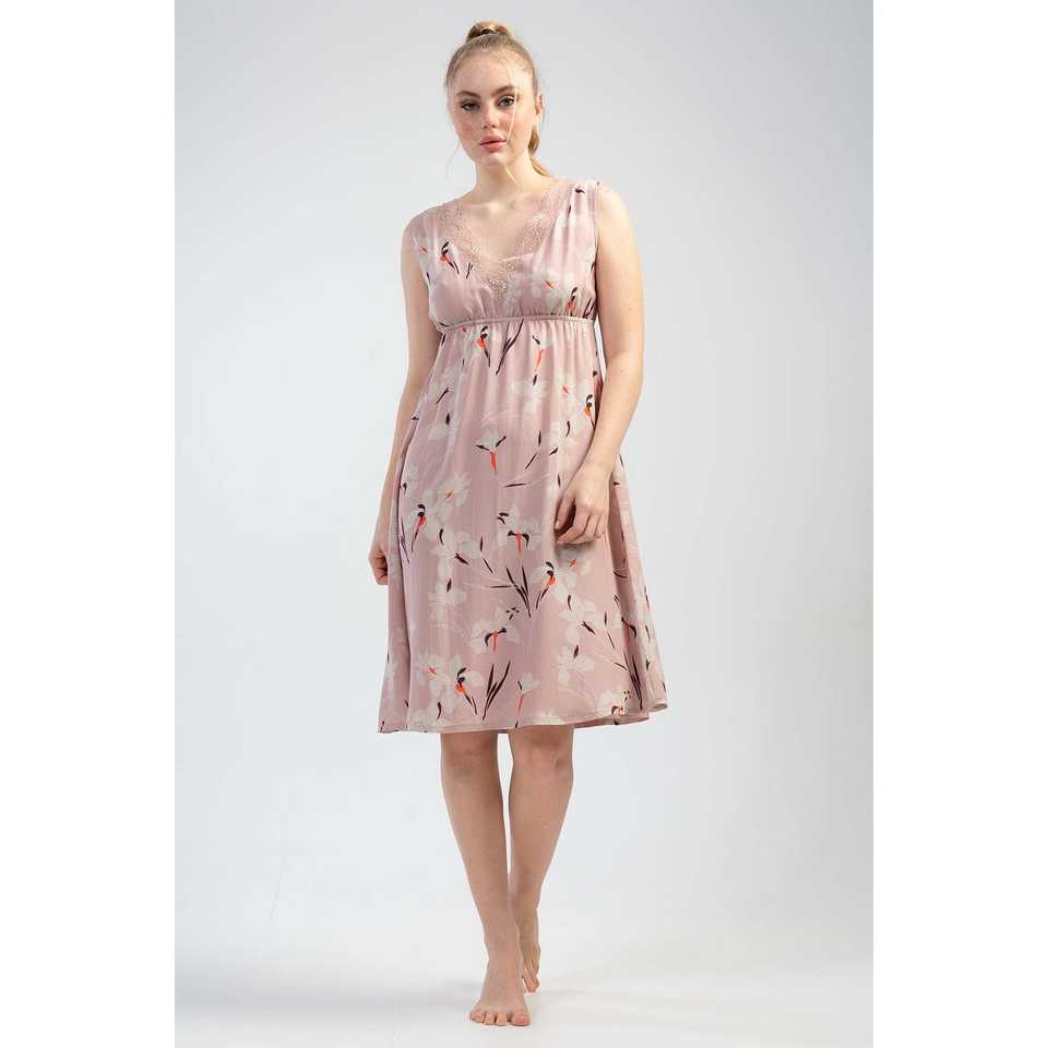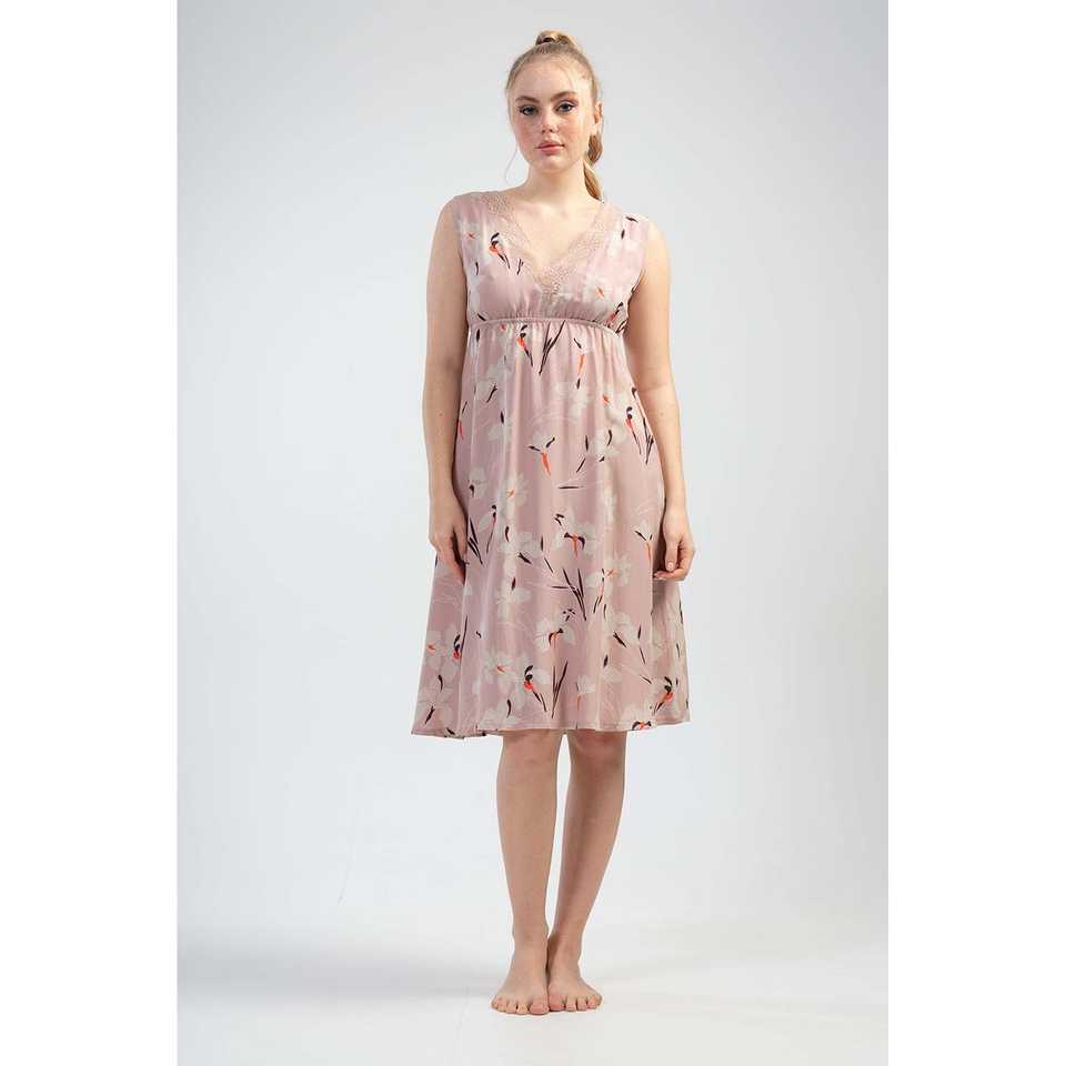 เสื้อทูนิคแขนกุดคอวีผ้าวิสโคสสำหรับผู้หญิง แต่งลูกไม้ที่ชายเสื้อ กระโปรงบาน