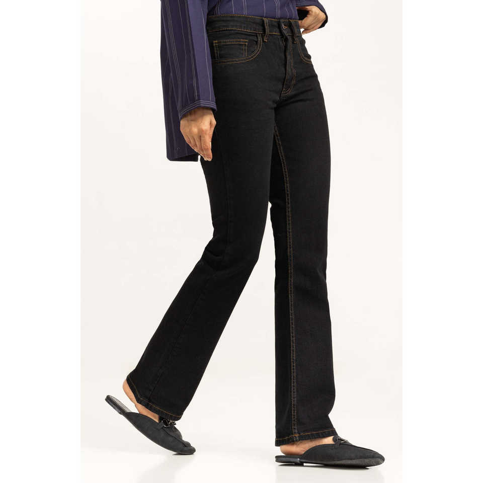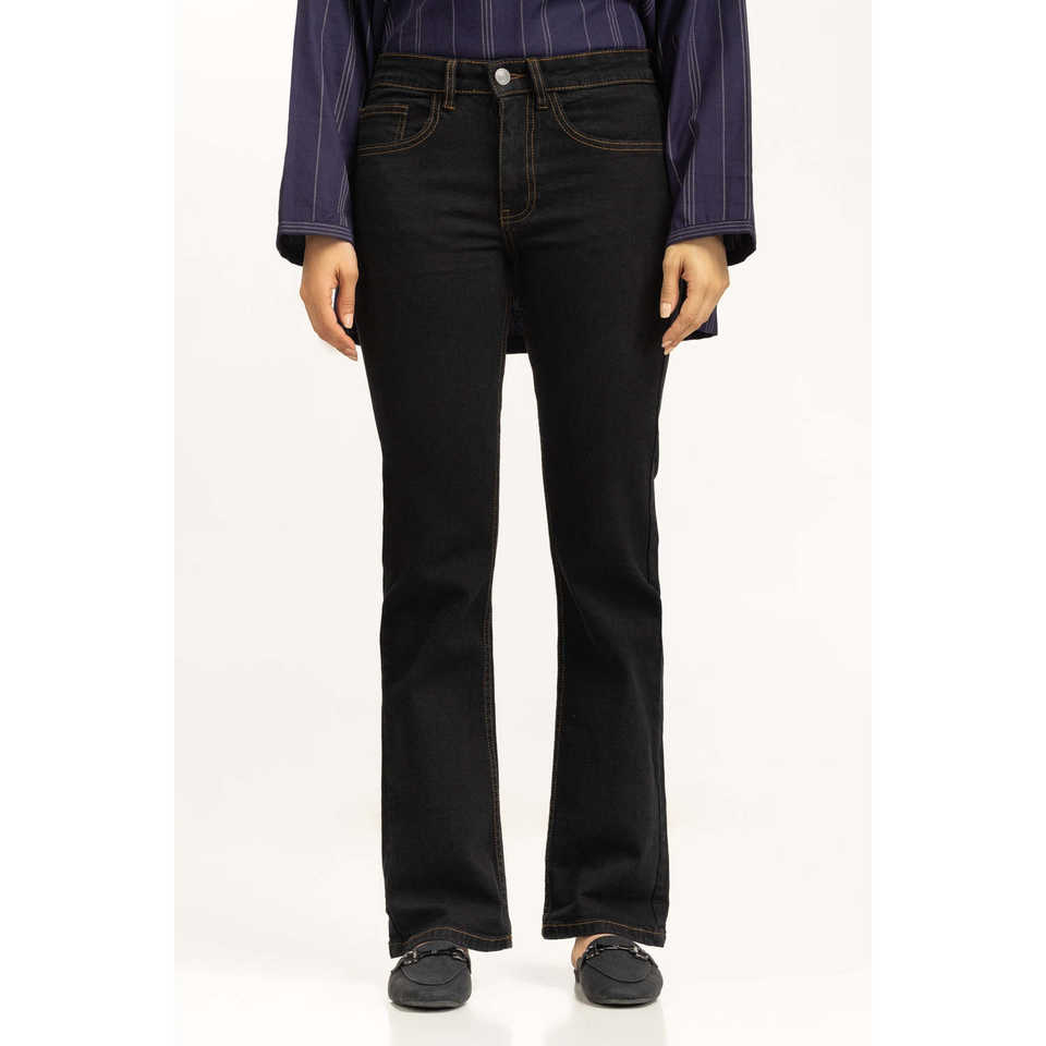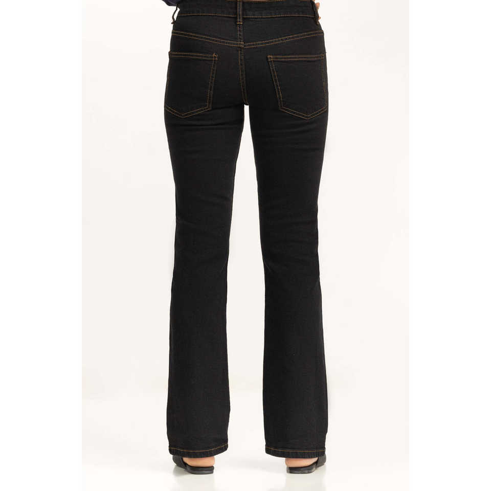 กางเกงยีนส์ทรงบูทคัทเอวสูงสำหรับผู้หญิง รุ่น WM-JNS-SS25-002 ทรงสกินนี่ ระบายอากาศได้ดี ตกแต่งด้วยกระดุม ลายดอกไม้และสัตว์