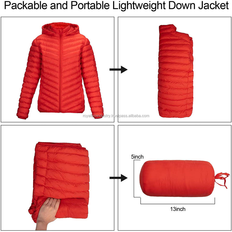 แจ็กเก็ตกันน้ำสำหรับผู้หญิง, เสื้อโค้ทขนเป็ดแขนยาวมีซิปน้ำหนักเบากันน้ำมีฮู้ดขนาดใหญ่พิเศษสำหรับฤดูหนาว