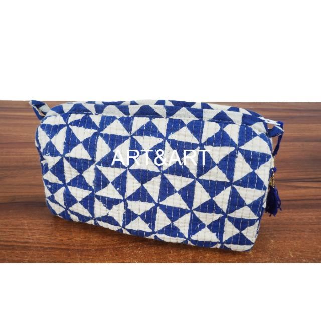 Women's Waterproof Quilted Cotton Cosmetic Pouch Floral Handmade Zipper Storage Bag Fashionable Geometric Pattern Autumn Winter