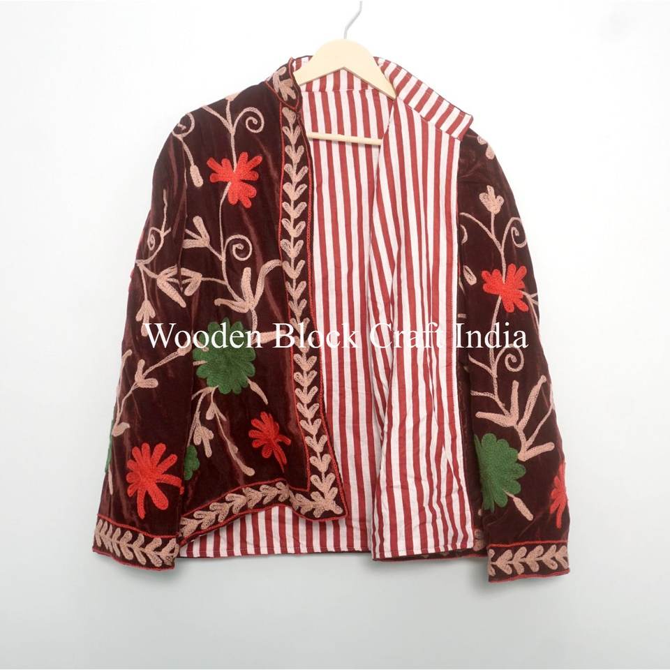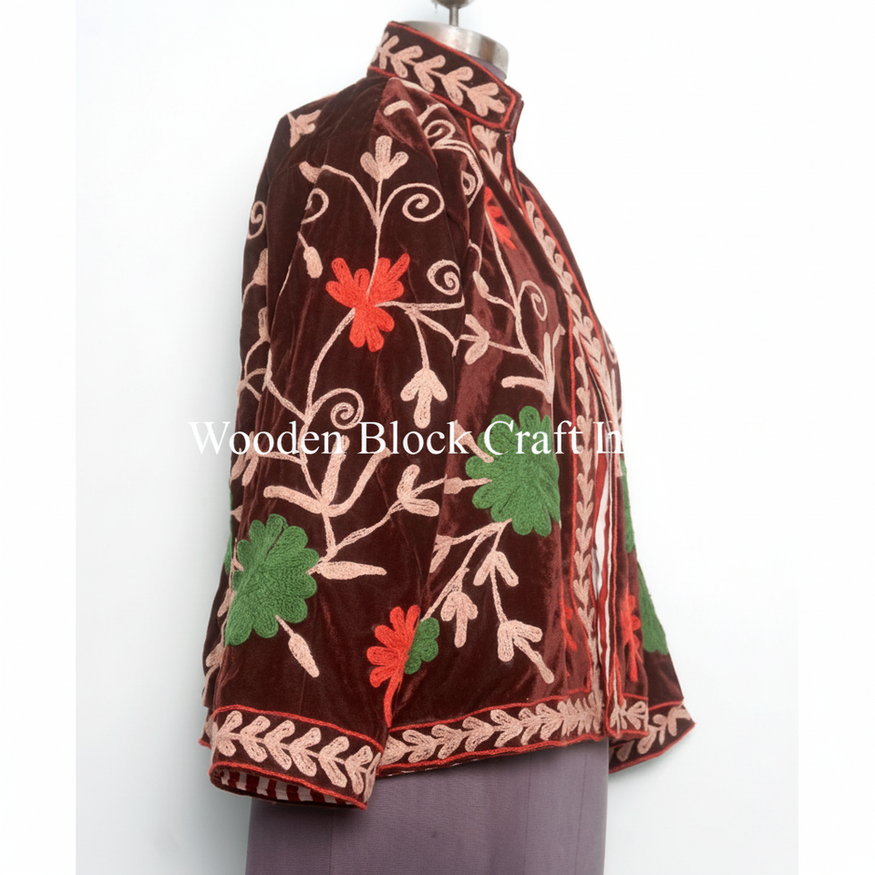 เสื้อแจ็คเก็ตกำมะหยี่สวยงามสำหรับผู้หญิง ลายปักดอกไม้ แจ็คเก็ตซูซานีสำหรับสาวๆ ใส่ไปงานปาร์ตี้