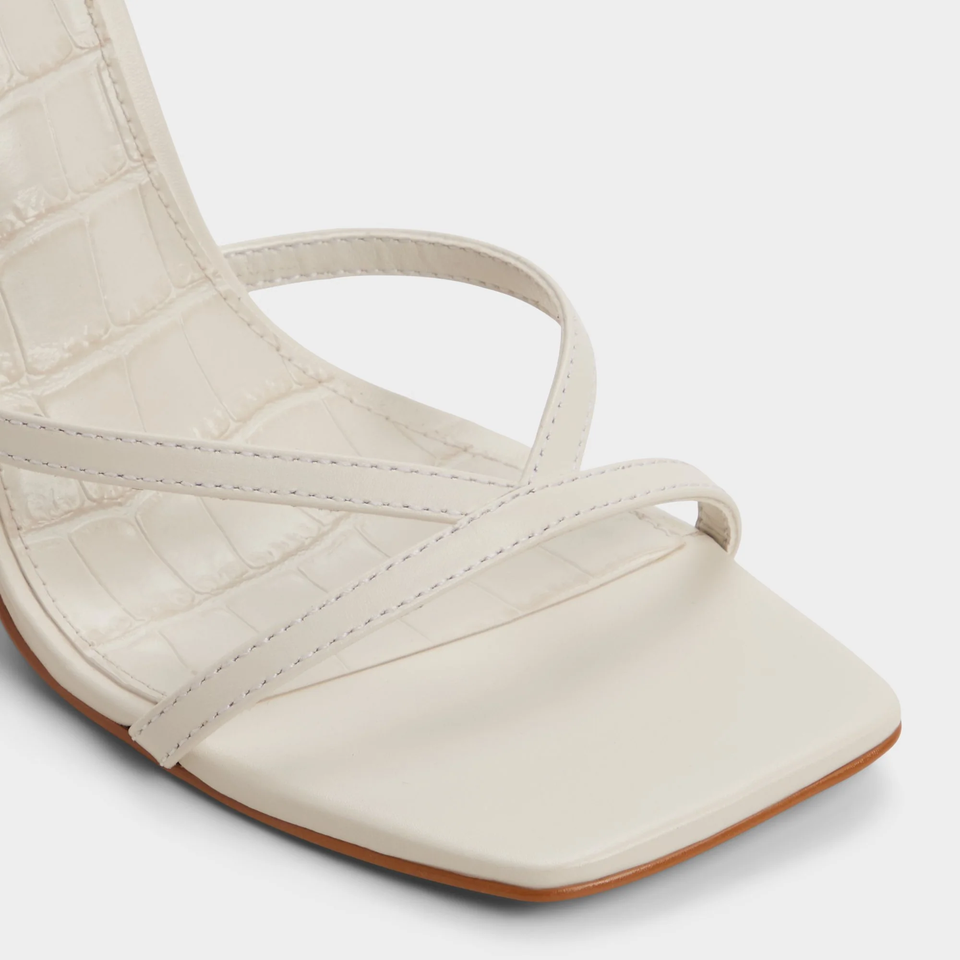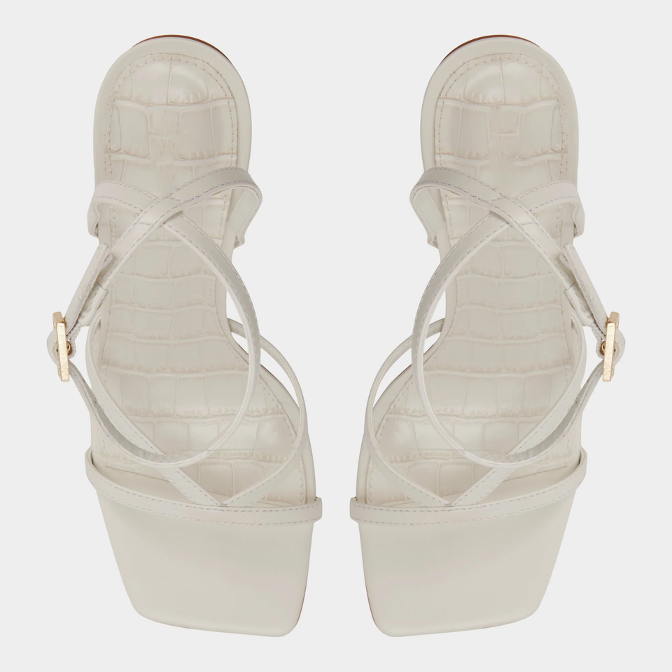 รองเท้าแตะผู้หญิงสีขาวลายจระเข้ประดับลูกปัดหลากสีสัน ส้นบล็อก สายรัดข้อเท้า เปิดนิ้วเท้า รองเท้าสำหรับงานปาร์ตี้