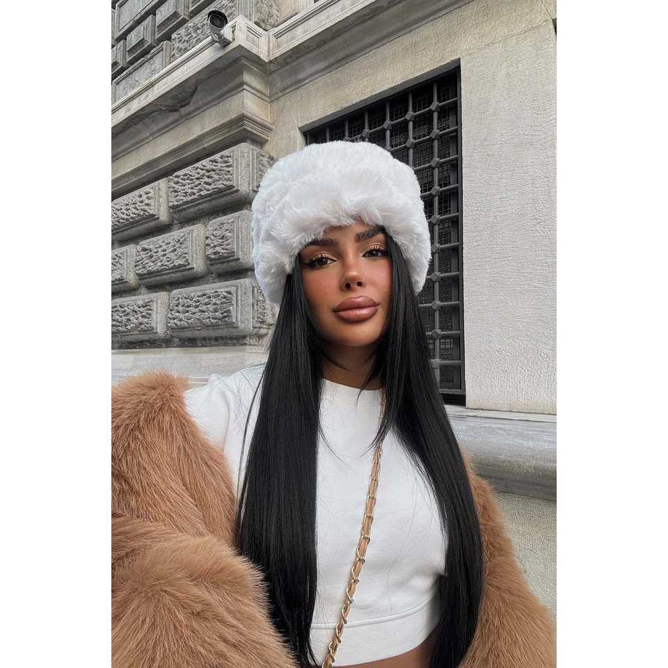 หมวกขนเฟอร์เทียมสีขาวสำหรับผู้หญิง เครื่องประดับสุดหรูสำหรับเสื้อโค้ท