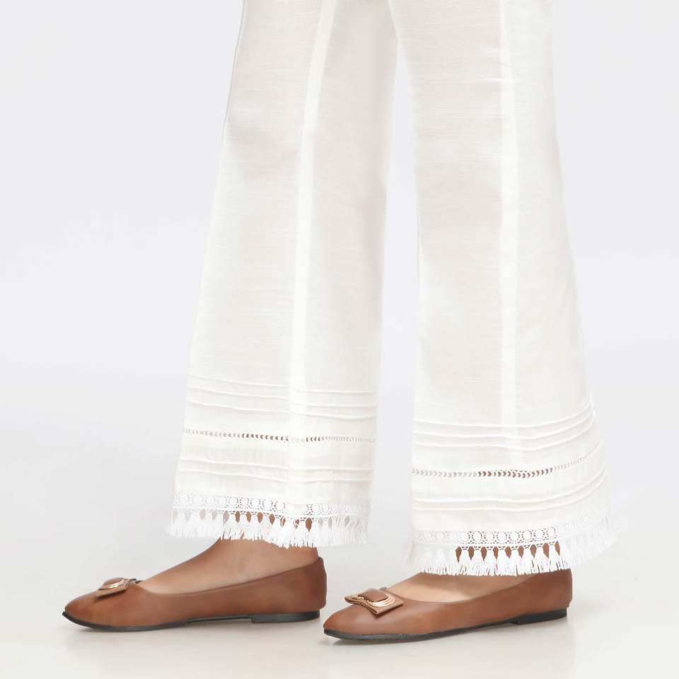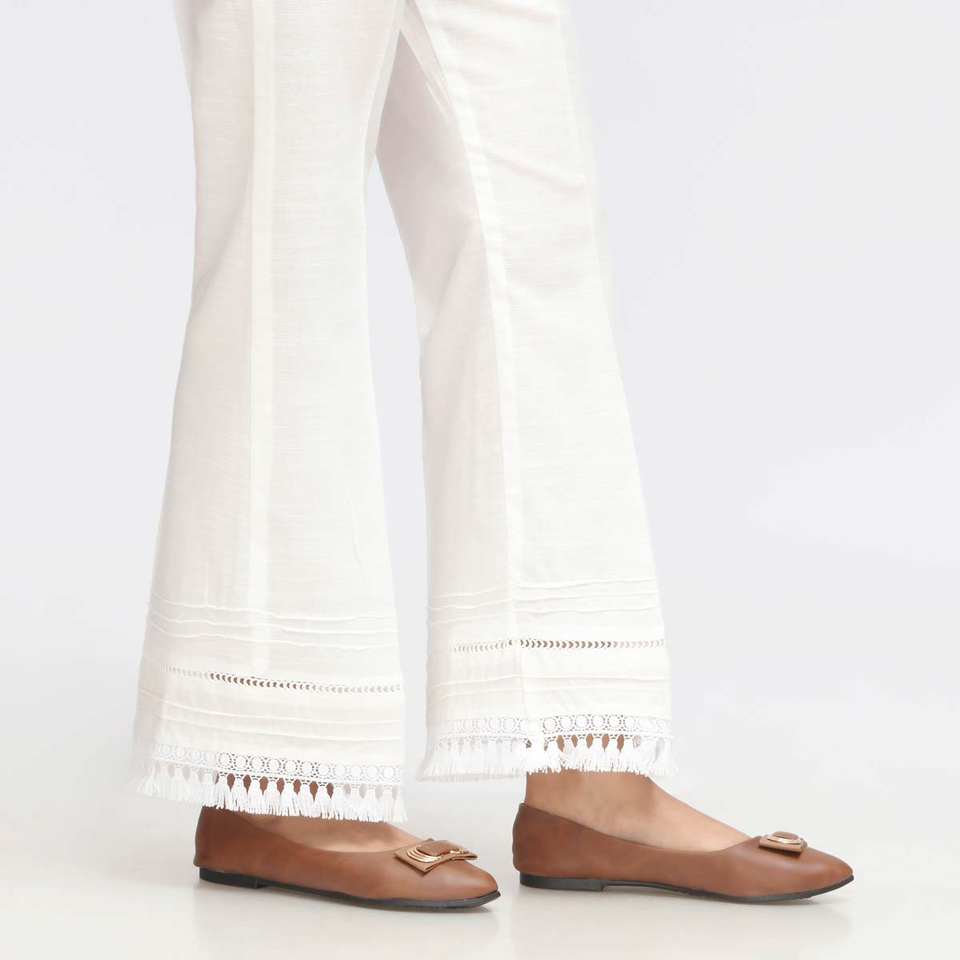 กางเกงขาตรงสีกากีประดับลูกไม้สีขาวของผู้หญิง PW3597