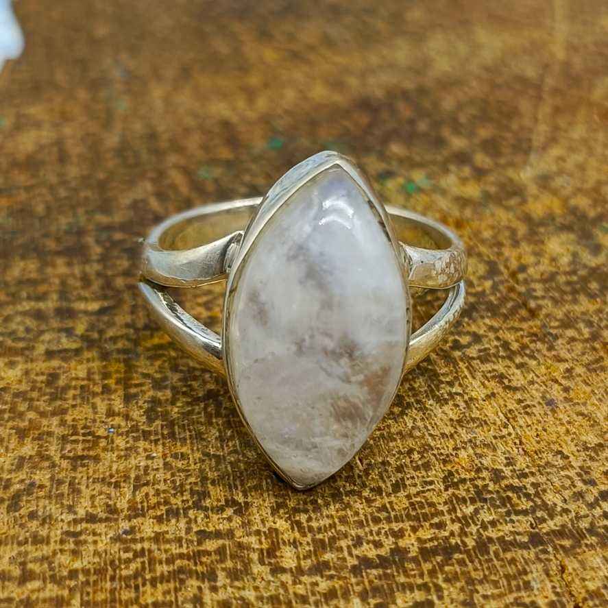 แหวนแต่งงานทรงมาร์คีส์สีขาวของผู้หญิงเครื่องประดับที่ดีรุ้งแวววาวกึ่งมีค่าพลอยพลอยสีรุ้งอัญมณีสีหลัก