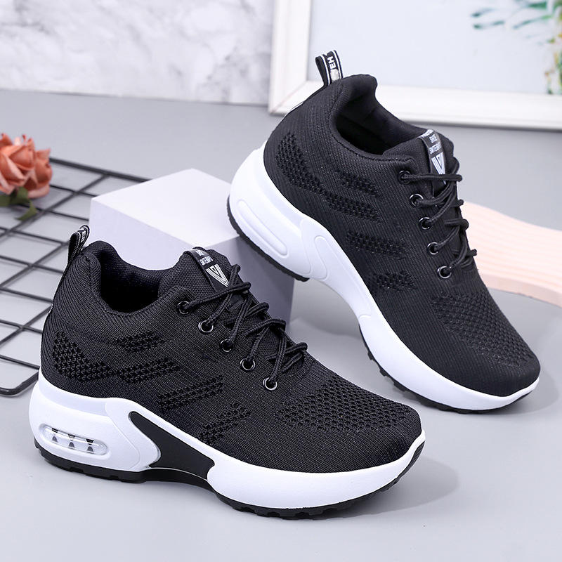รองเท้ากีฬาผู้หญิงสีขาวตาข่ายระบายอากาศดี สไตล์ลำลอง เสริมส้นแบบซ่อน เพิ่มความสูง เหมาะสำหรับเดิน ดีไซน์ใหม่สำหรับฤดูใบไม้ร่วง