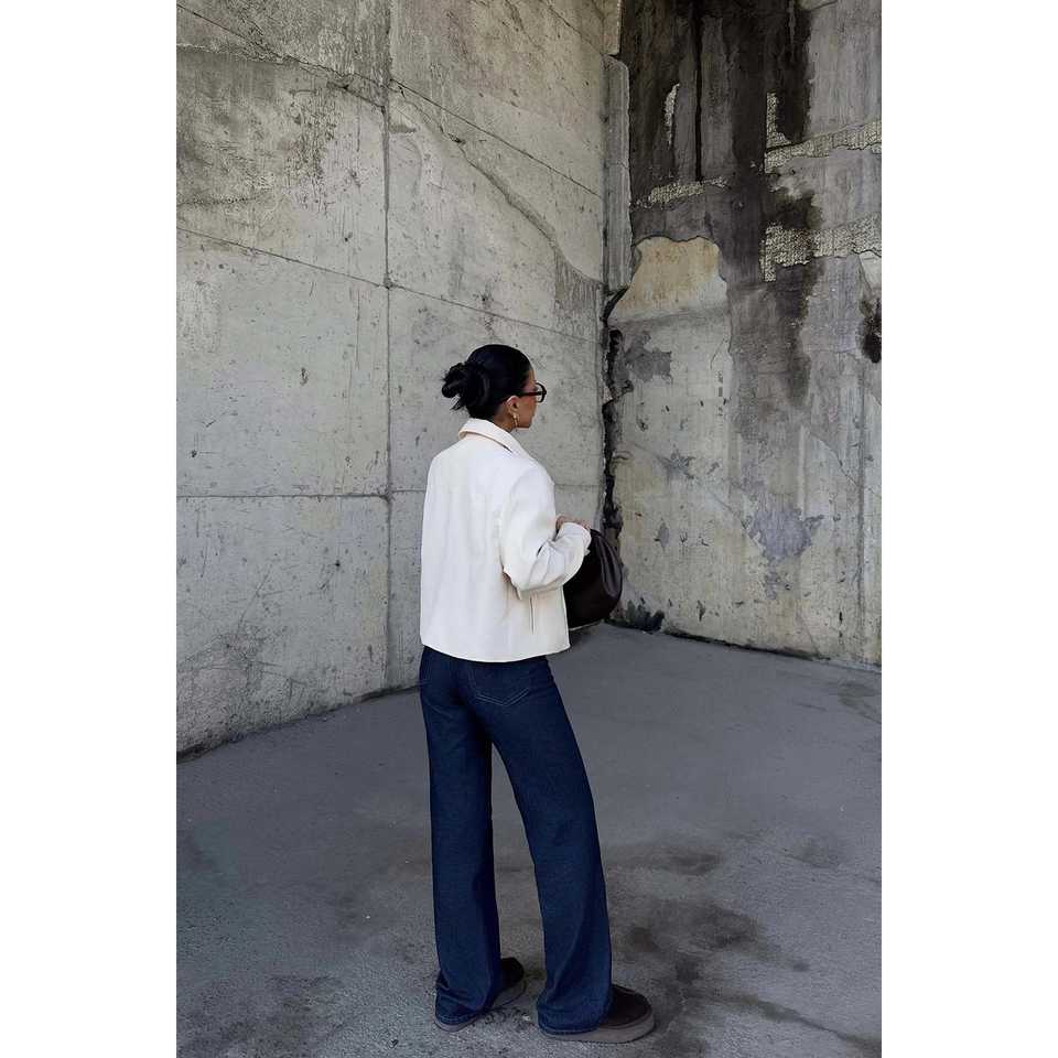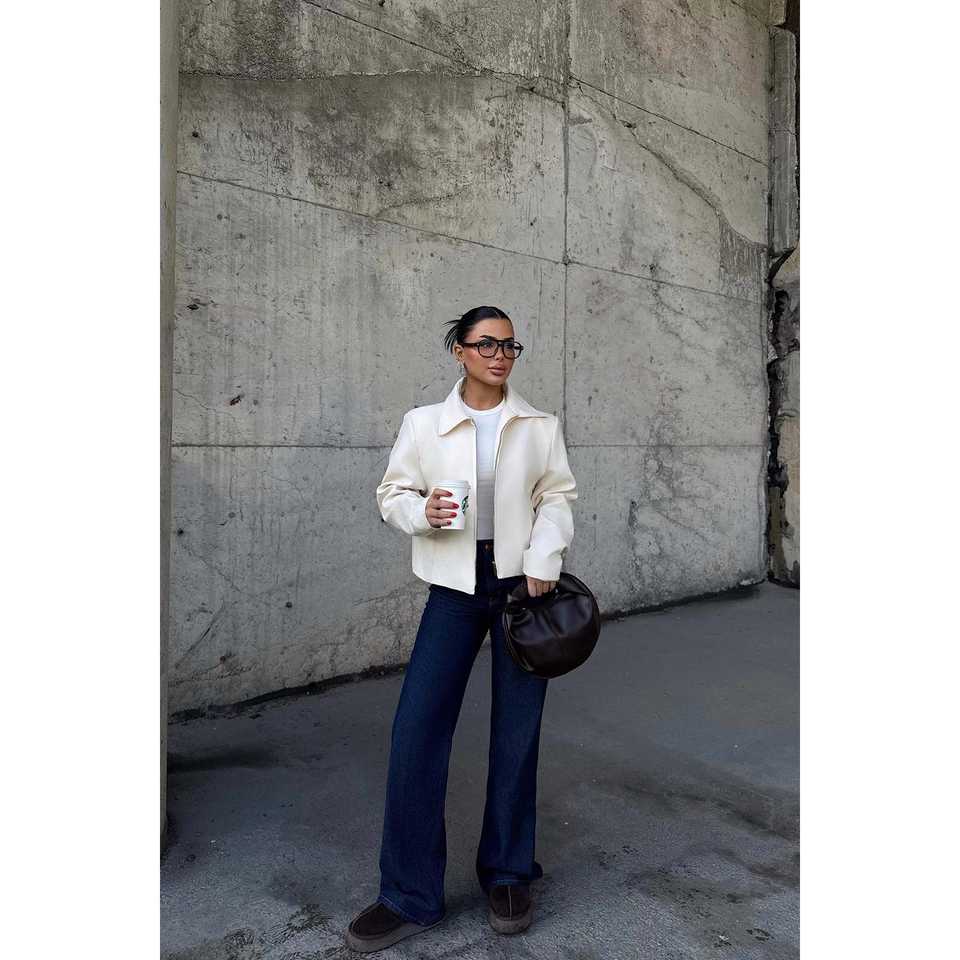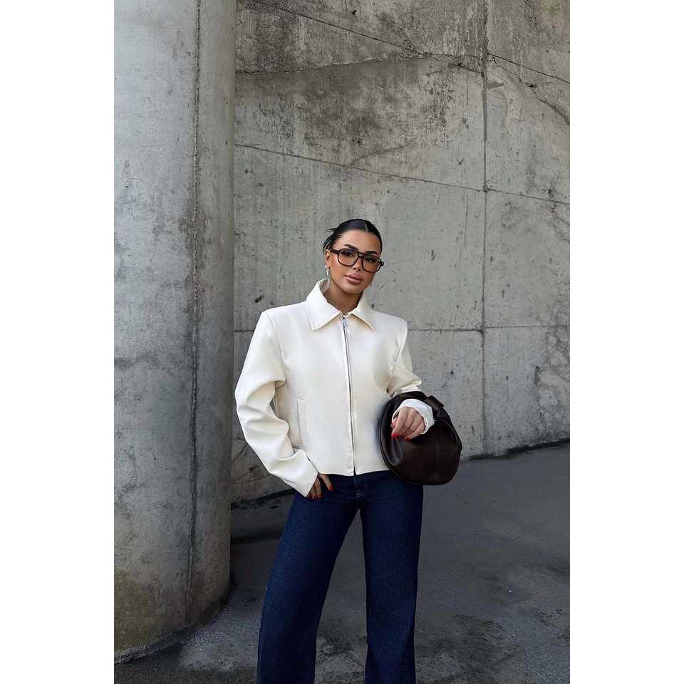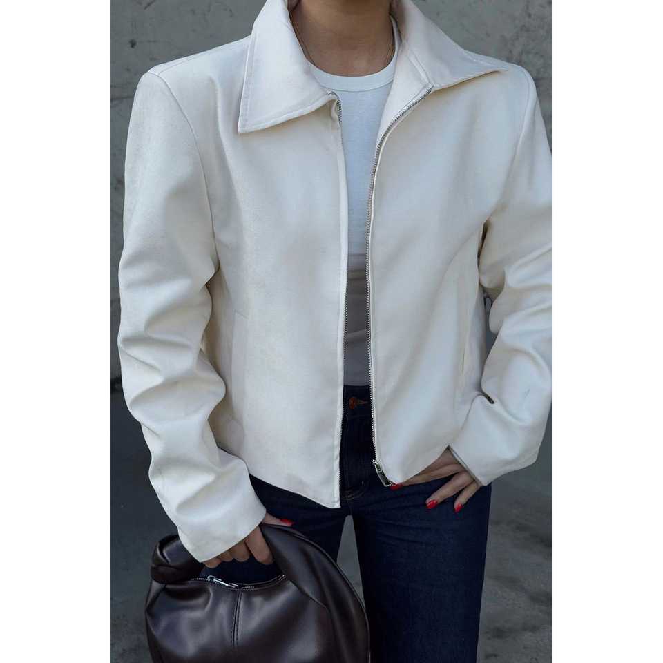 เสื้อแจ็คเก็ตคอปกสีขาวสำหรับผู้หญิง