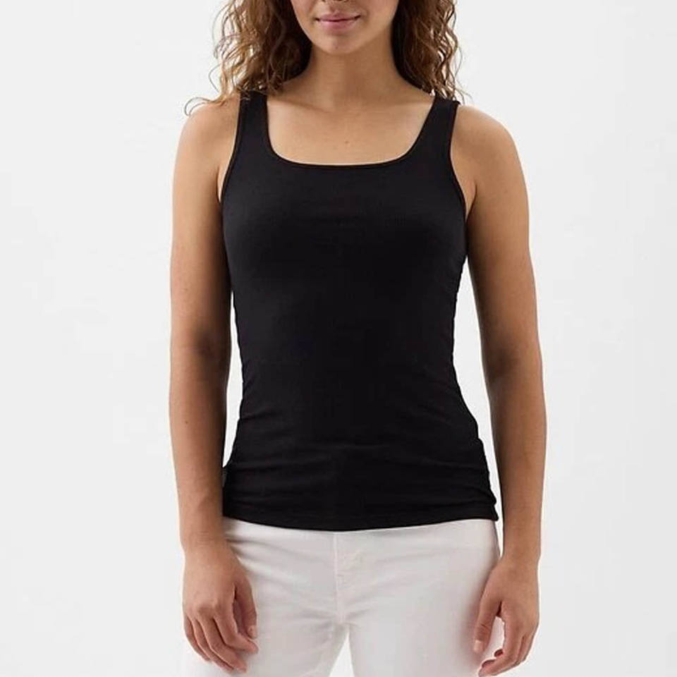 เสื้อกล้ามคอสี่เหลี่ยมสีขาวสำหรับผู้หญิง | เสื้อมินิมอลแขนกุดทรงสลิมฟิต | ชุดลำลองขั้นพื้นฐาน