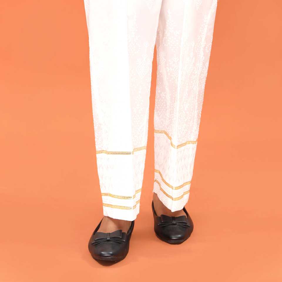 PL5015ของผู้หญิงสีขาวตรงปักกางเกง