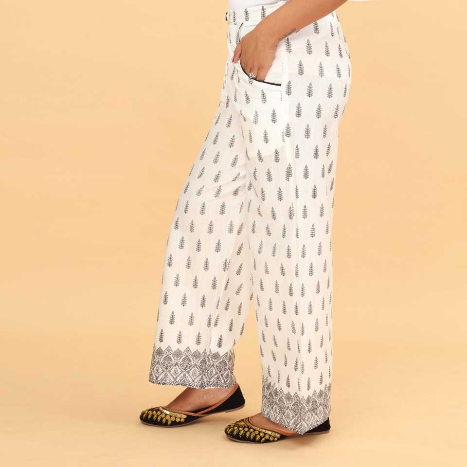 กางเกงผู้หญิงสีขาวตรงพิมพ์ลายแบบ PW4506