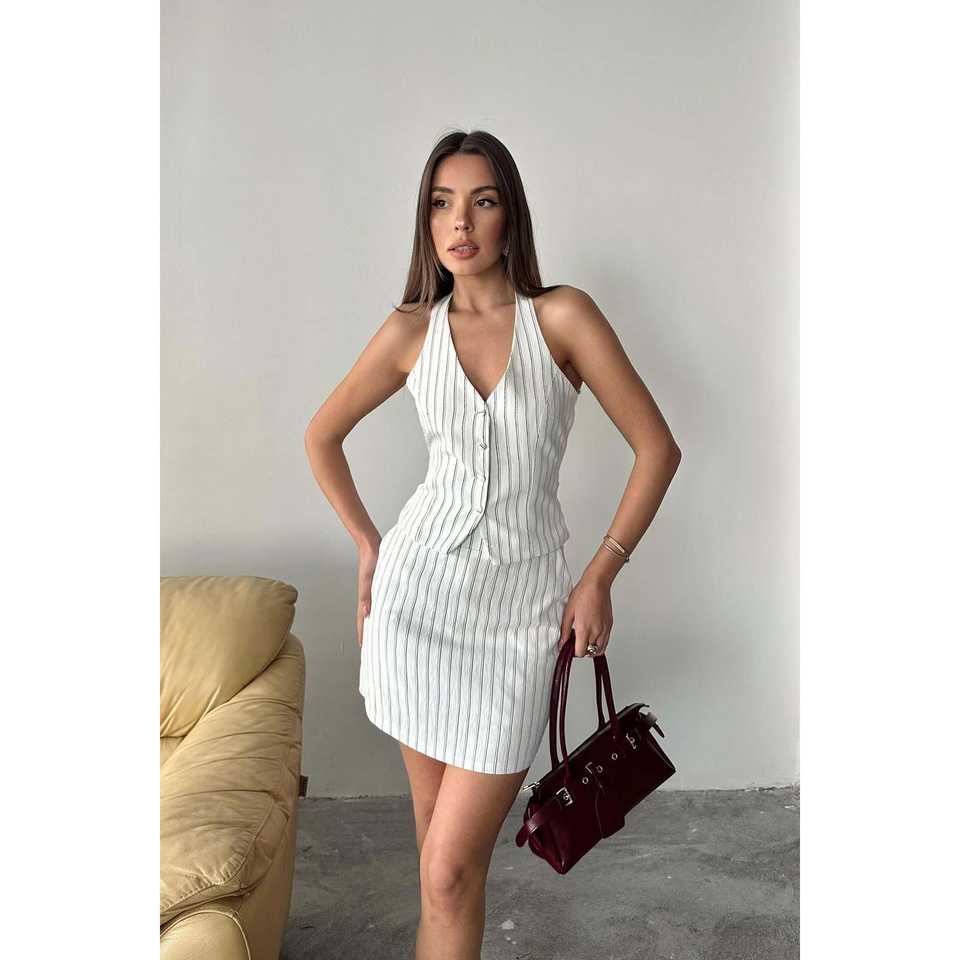 ชุดเซ็ตเสื้อกล้ามลายทางสีขาวและกางเกงขาสั้นลายดอกไม้เหนือเข่า ไซส์ XS แบบขายส่ง ชุดเซ็ต 2 ชิ้น