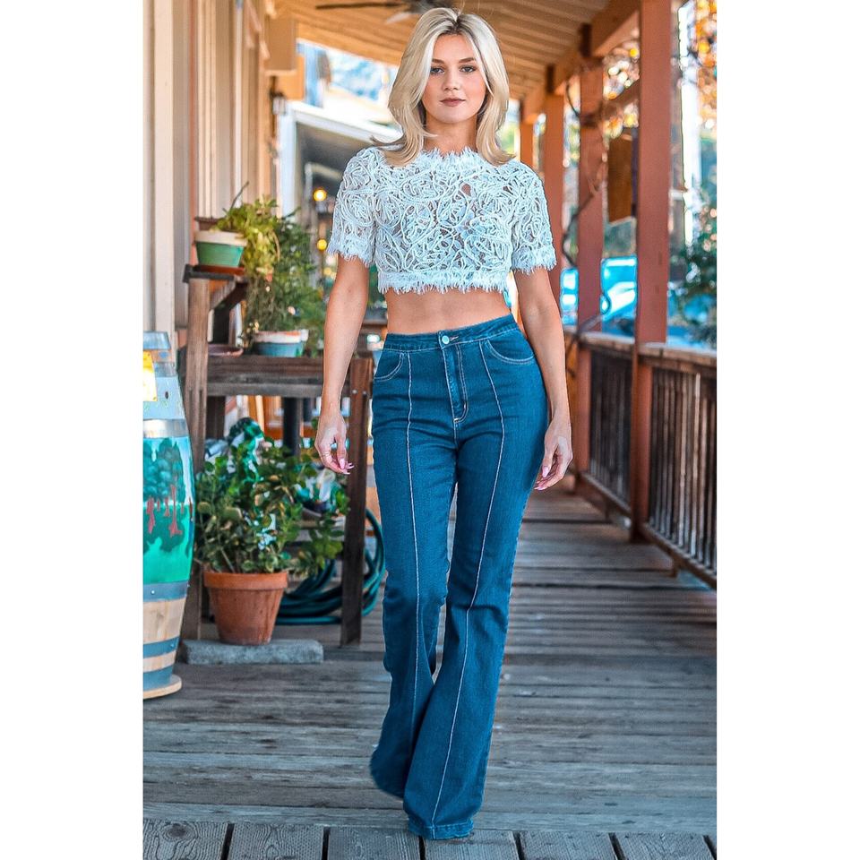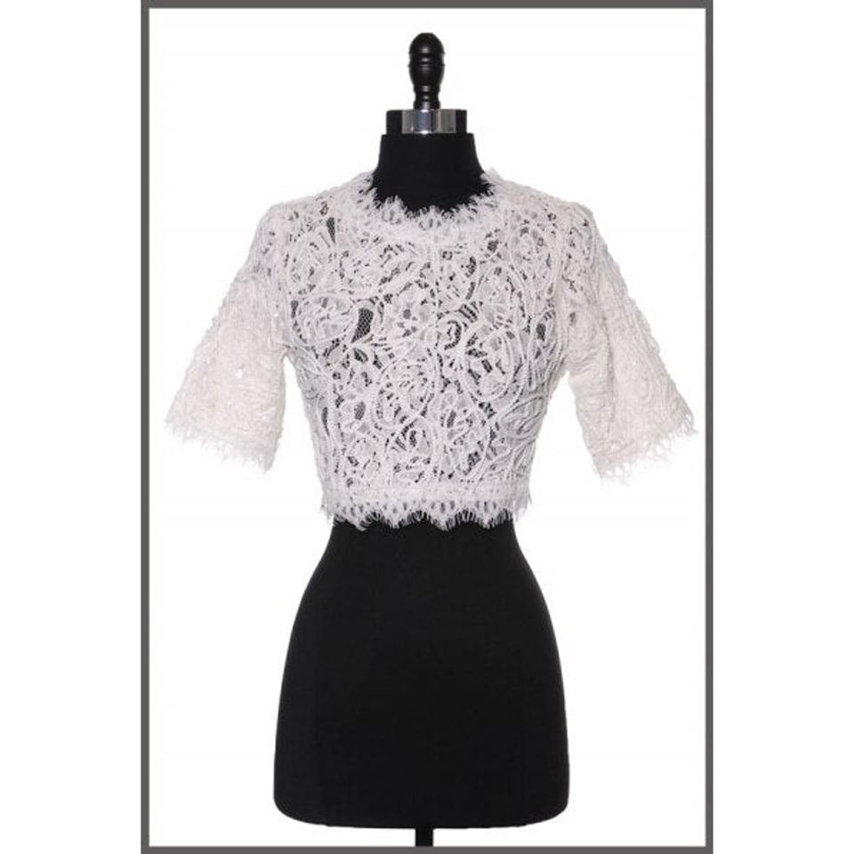 Women's White TD Cropped Detail Vines Top Fashionable Skirt Accessory