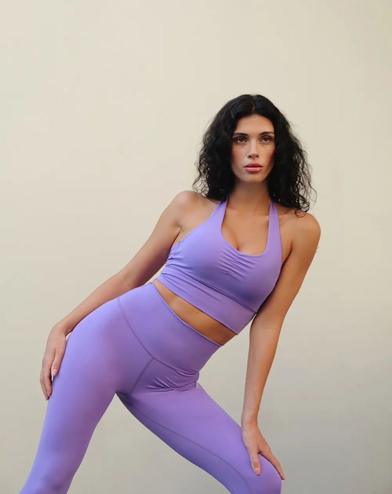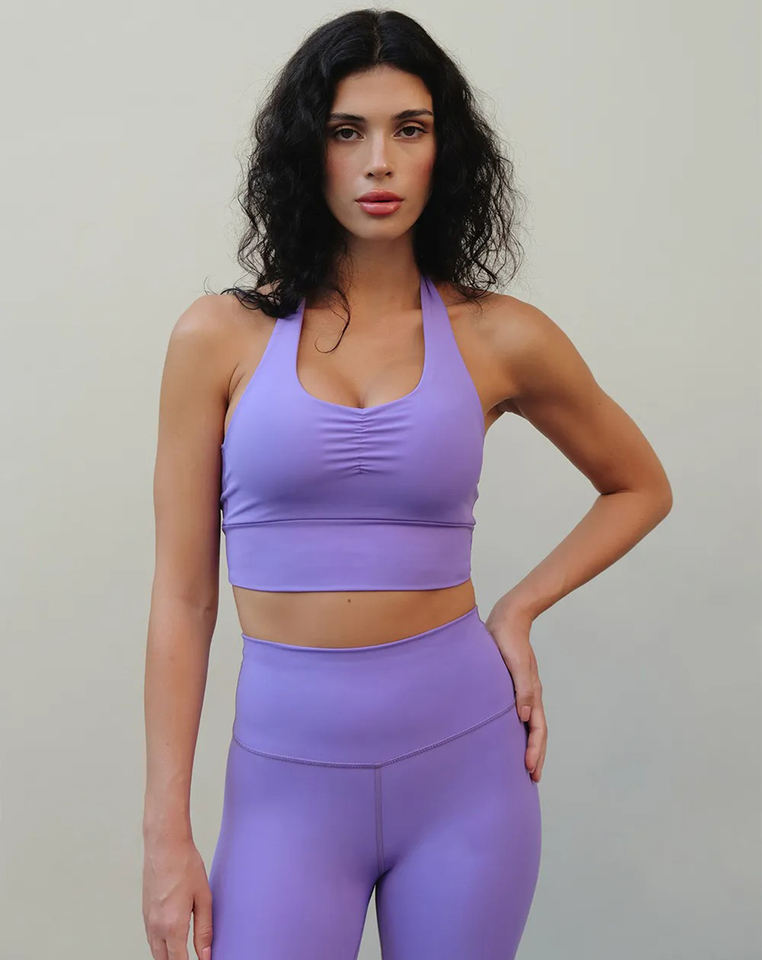 เสื้อชั้นในกีฬาแบบผูกคอสำหรับผู้หญิง ขายส่ง น้ำหนักเบา ไร้ตะเข็บ ระบายอากาศได้ดี รองรับได้ดี สีพื้น