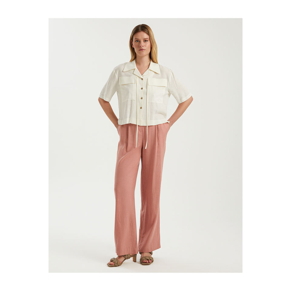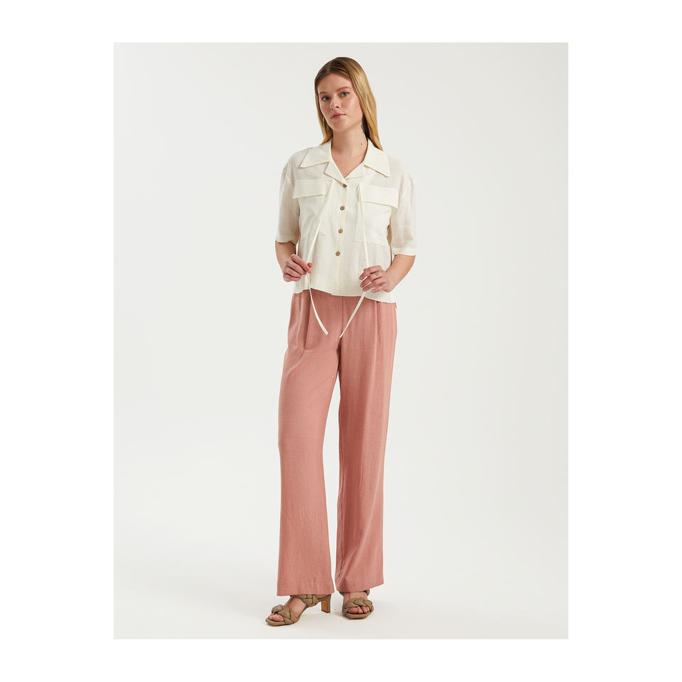 กางเกงผ้าลินินขากว้างสำหรับผู้หญิง ยี่ห้อ BGN รุ่น S23P163 ผลิตในตุรกี