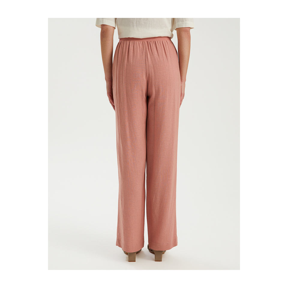 กางเกงขายาวผ้าลินินทรงขาบานสำหรับผู้หญิง มีกระเป๋าคู่ คาดเข็มขัด ไม่มีซับใน