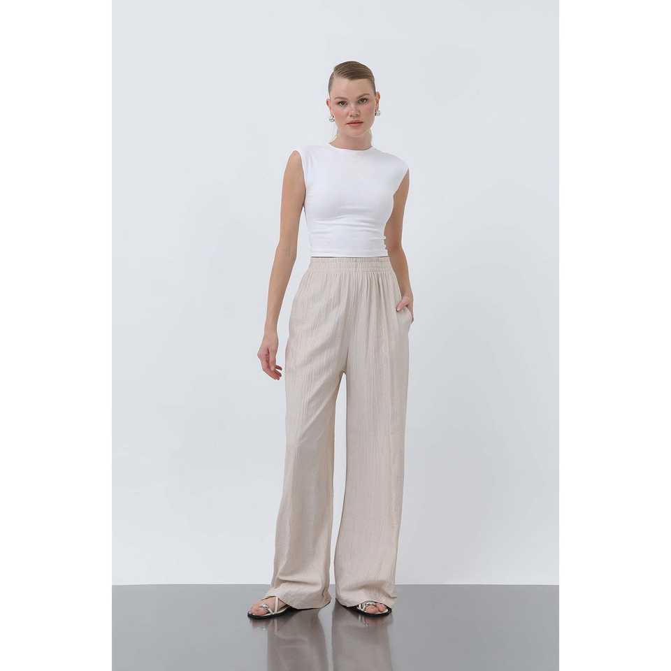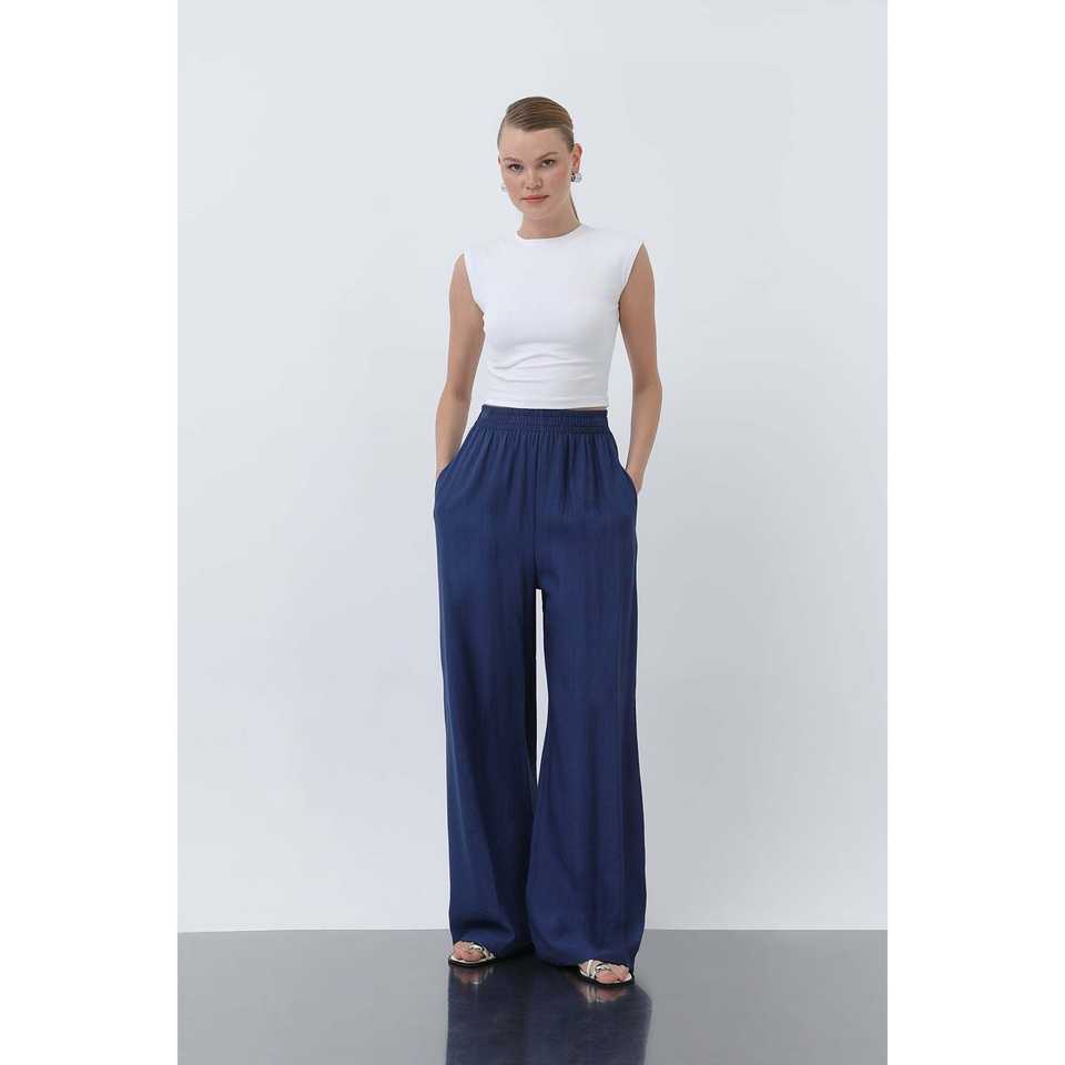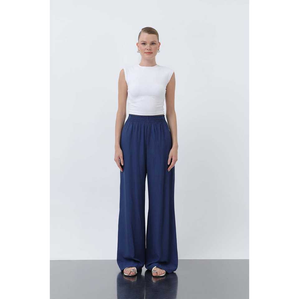 กางเกงขากว้างผู้หญิงเอวสูงผ้าเครประบายอากาศได้ดีสีฟ้า
