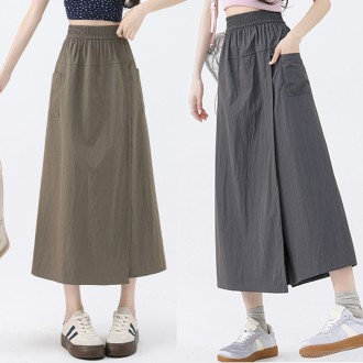 Women's Wide Long Wrap Skirt Pants Elastic Waist Bermuda Trousers with Wide Banding
